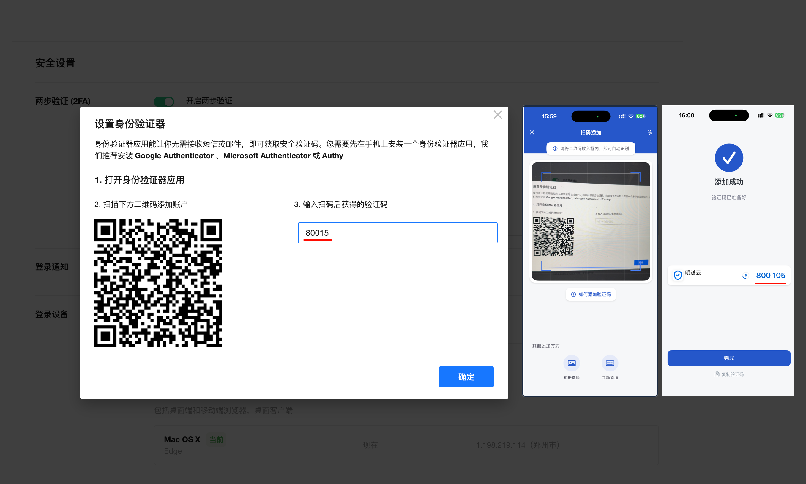 推荐安装 Google Authenticator、Microsoft Authenticator或Authy