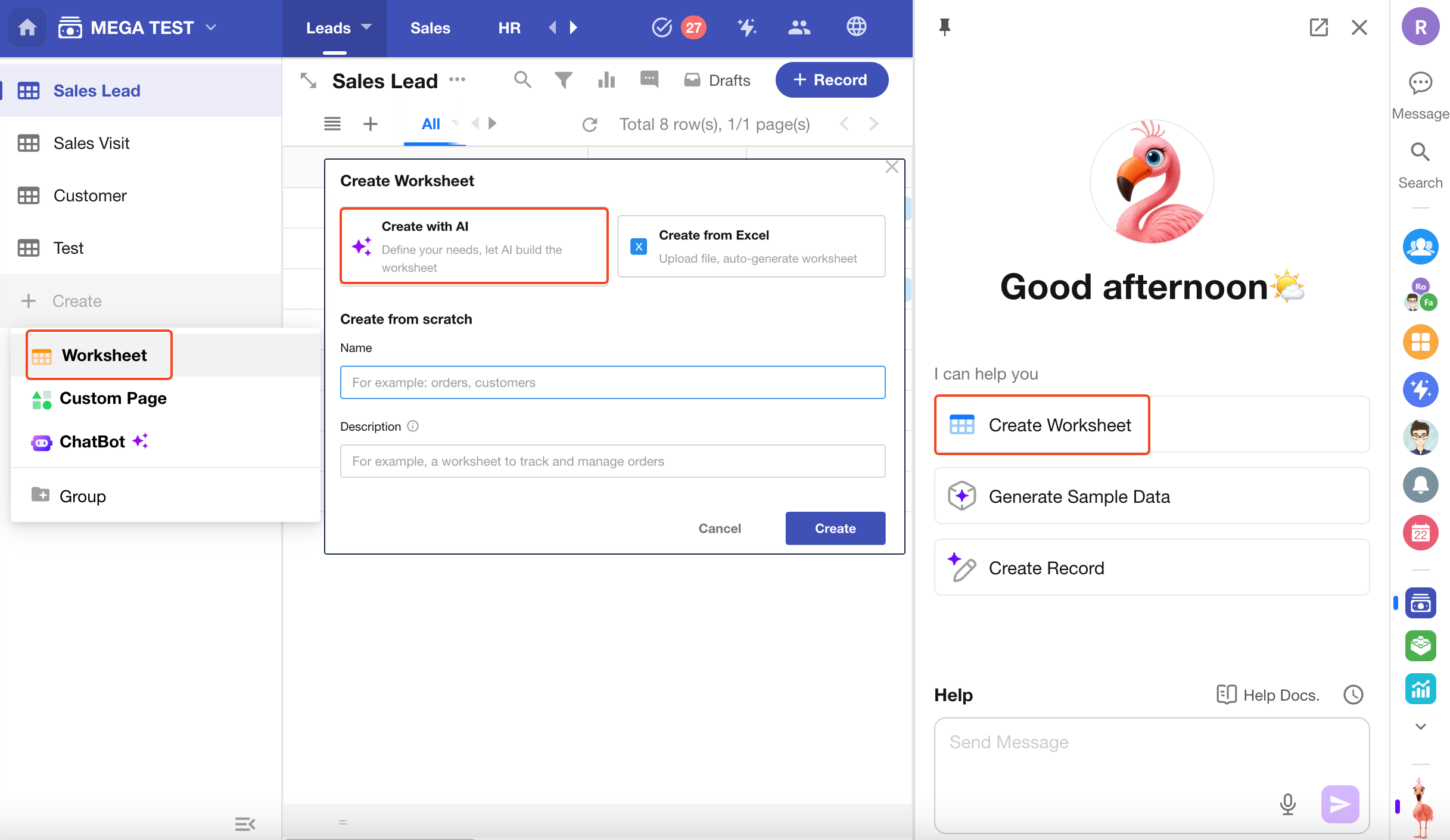 Alternatively, you can select “Create with AI” when creating a worksheet—the system will automatically launch Mingo to assist.