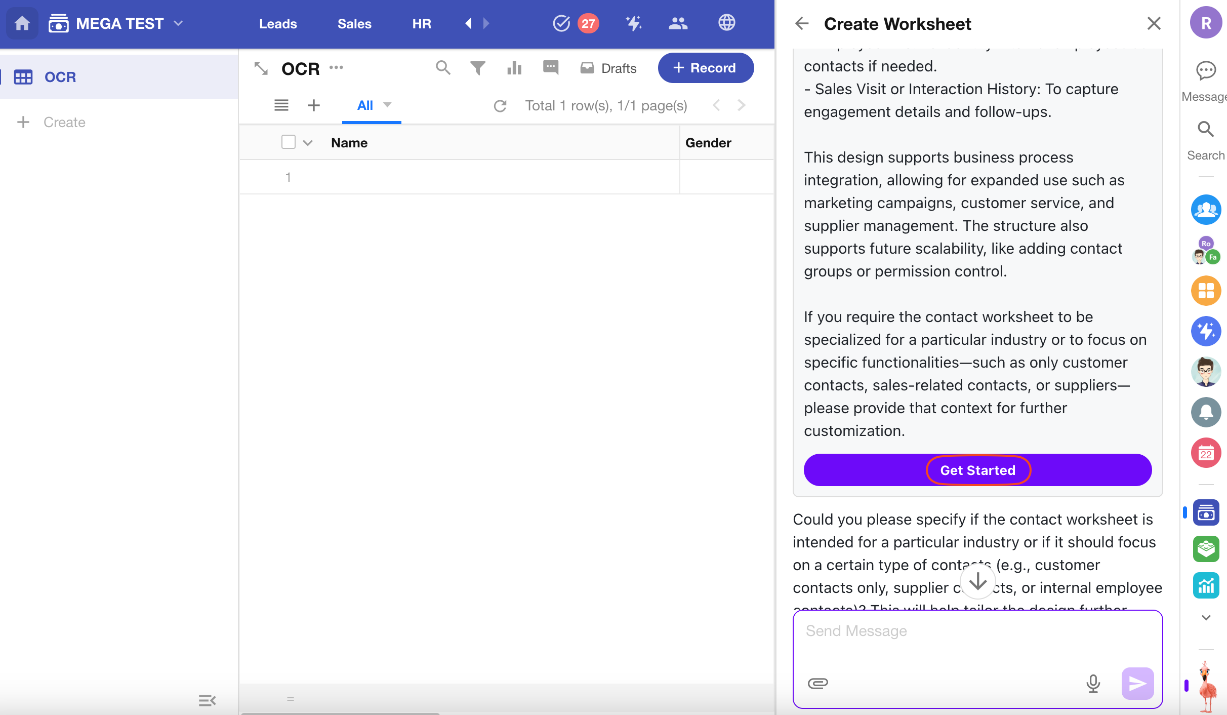 After confirmation, Mingo will automatically create the fields and configure their properties. Click the save button to complete worksheet creation.