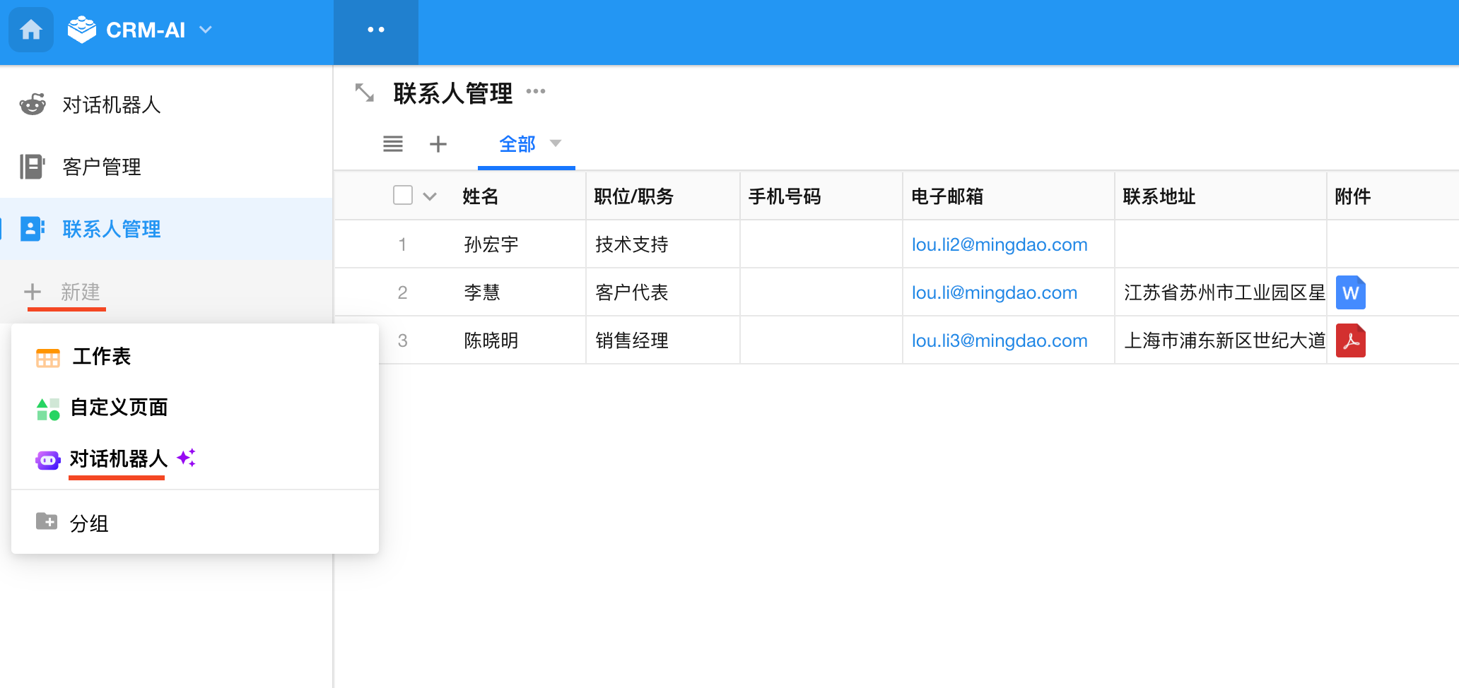 说明: 对话机器人不涉及数据的直接读写权限,其工具执行权限仍遵循工作流及数据表的原有权限体系。