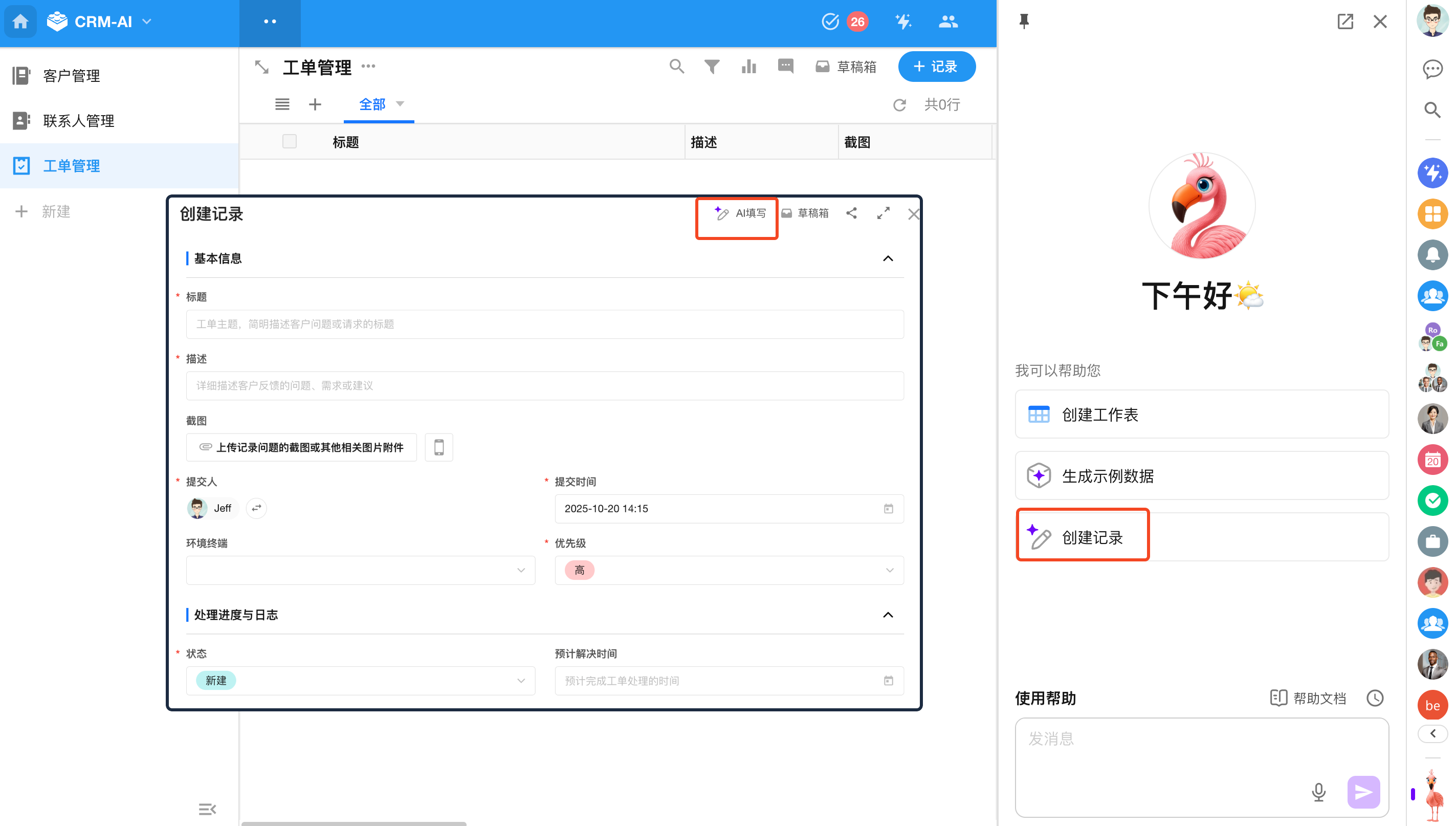 AI 会解析输入内容并自动写入可识别字段。确认无误后,点击“提交”。