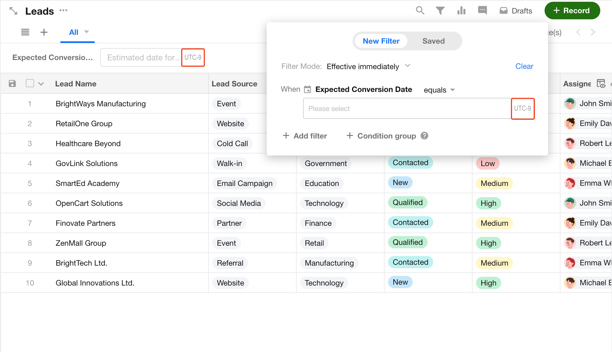 The application time zone serves as a unified time reference for cross-timezone collaboration. It ensures that when filtering worksheet records by date and time, all team members see consistent results regardless of their personal time zones.