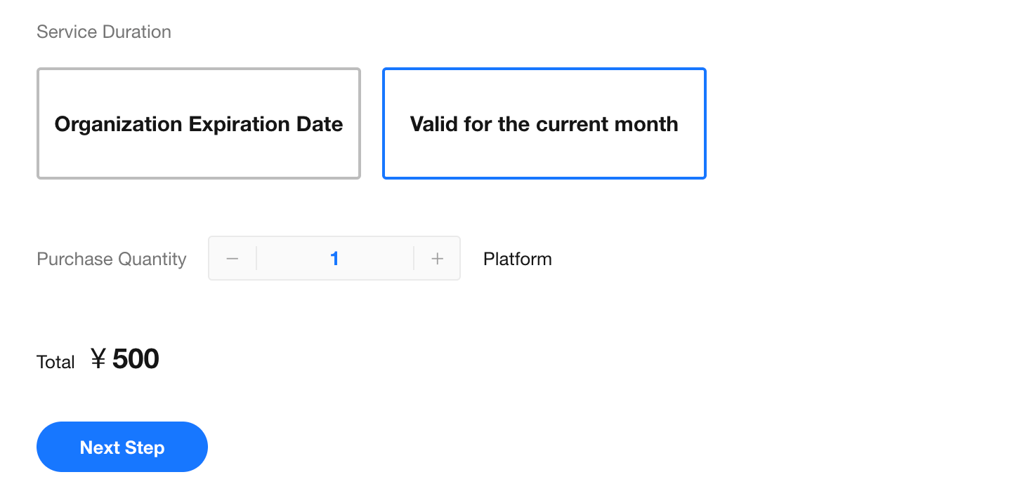 - Each organization can try a 20-concurrency instance for free once (single-month plan, valid for the purchase month).