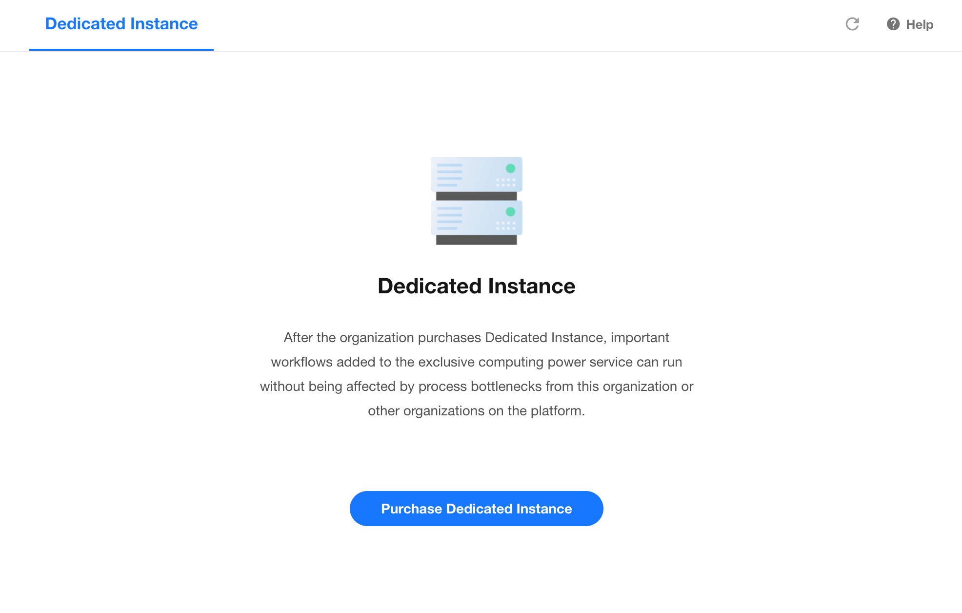 A dedicated instance is an exclusive resource purchased within the platform to run workflow independently. After purchasing a dedicated instance, critical workflows in your app can be assigned to run on it, avoiding delays caused by workflow congestion from your organization or other organizations on the platform.