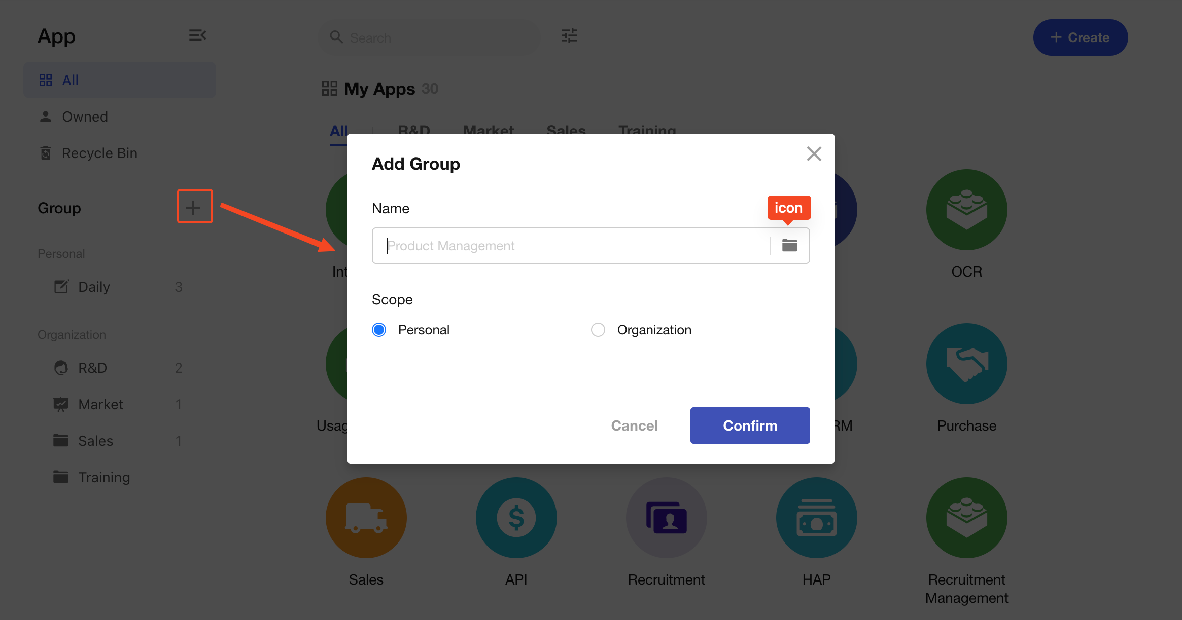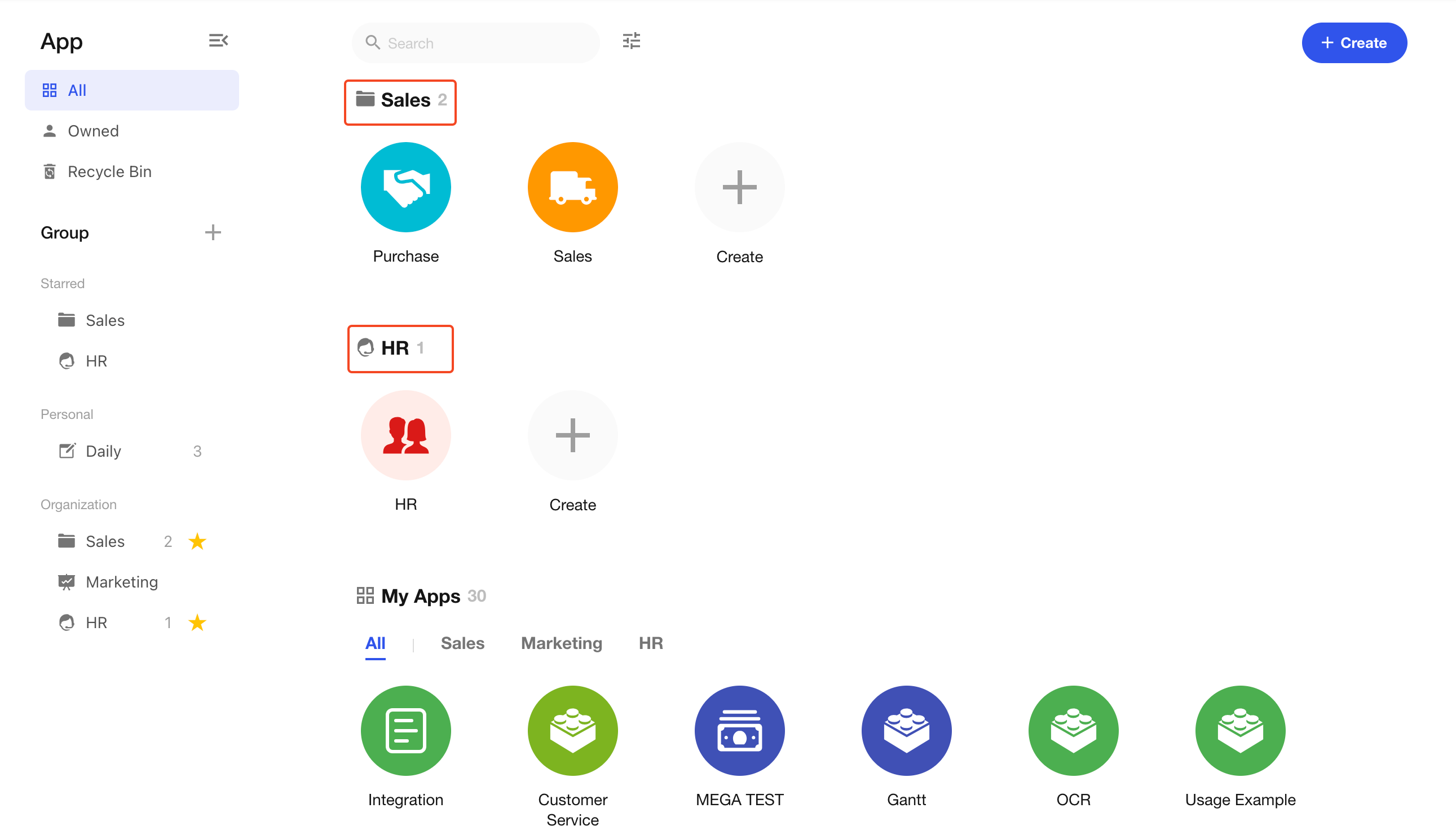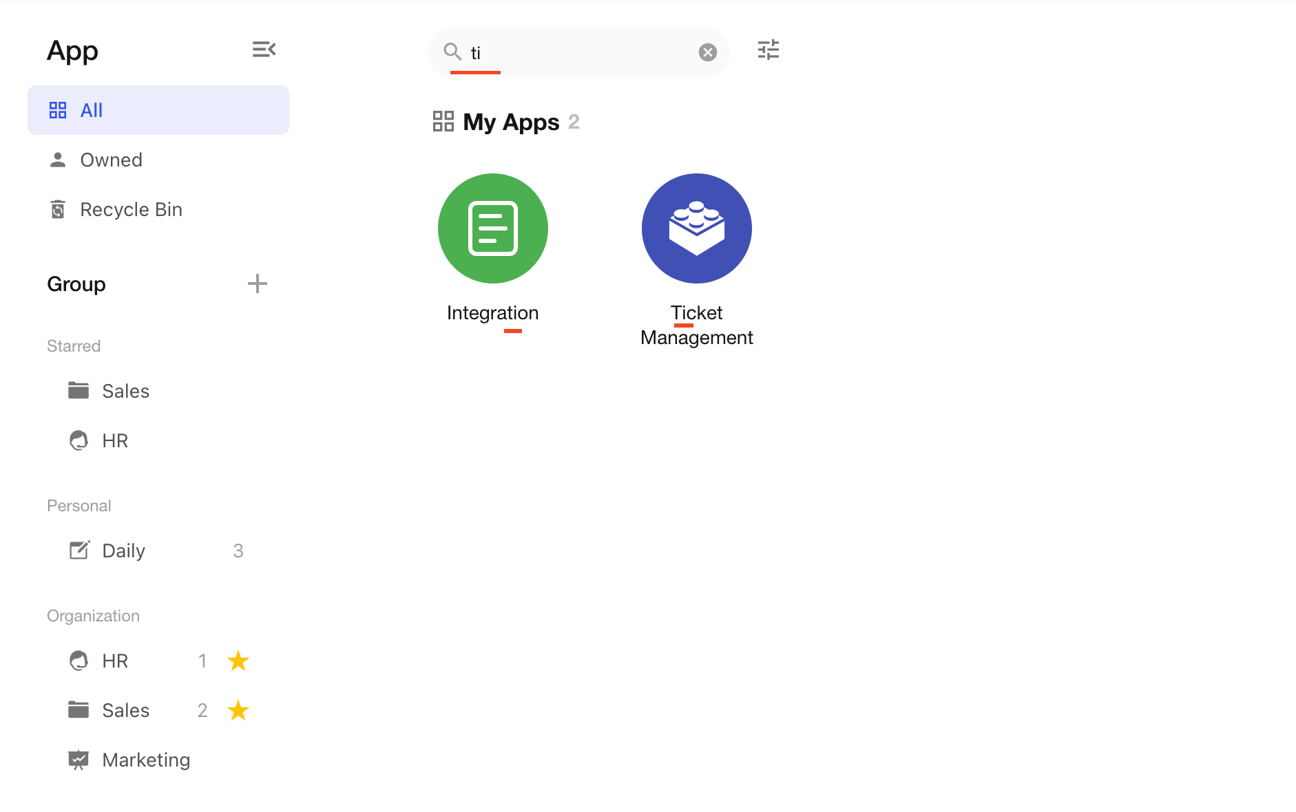 If you have many applications, you can organize them into custom groups—for example, by department, project, or business type—to quickly locate relevant applications.