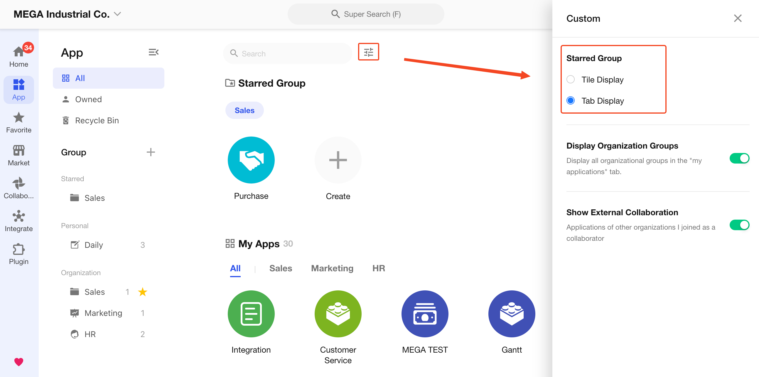 You can star groups to pin them to the top. Starred groups will appear at the top of the application display area. If a starred group contains applications, it will also be prioritized in display.