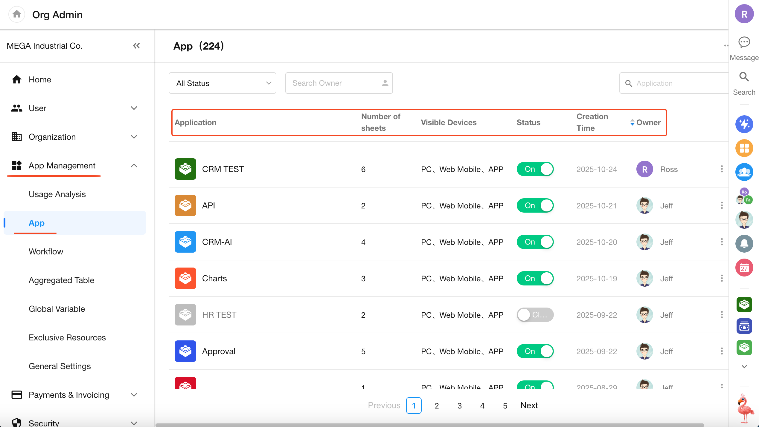 If the owner of an application leaves the organization, the ownership will be transferred to “Enterprise Assistant”. Whoever in the application cannot delete the application. In this case, Super Admin can add a member as new owner.