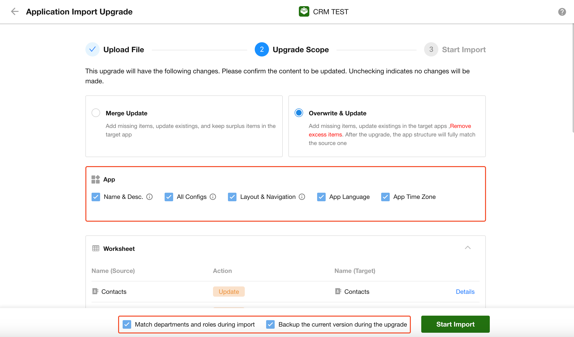 After confirming the configuration, click “Start Import” to complete the upgrade.