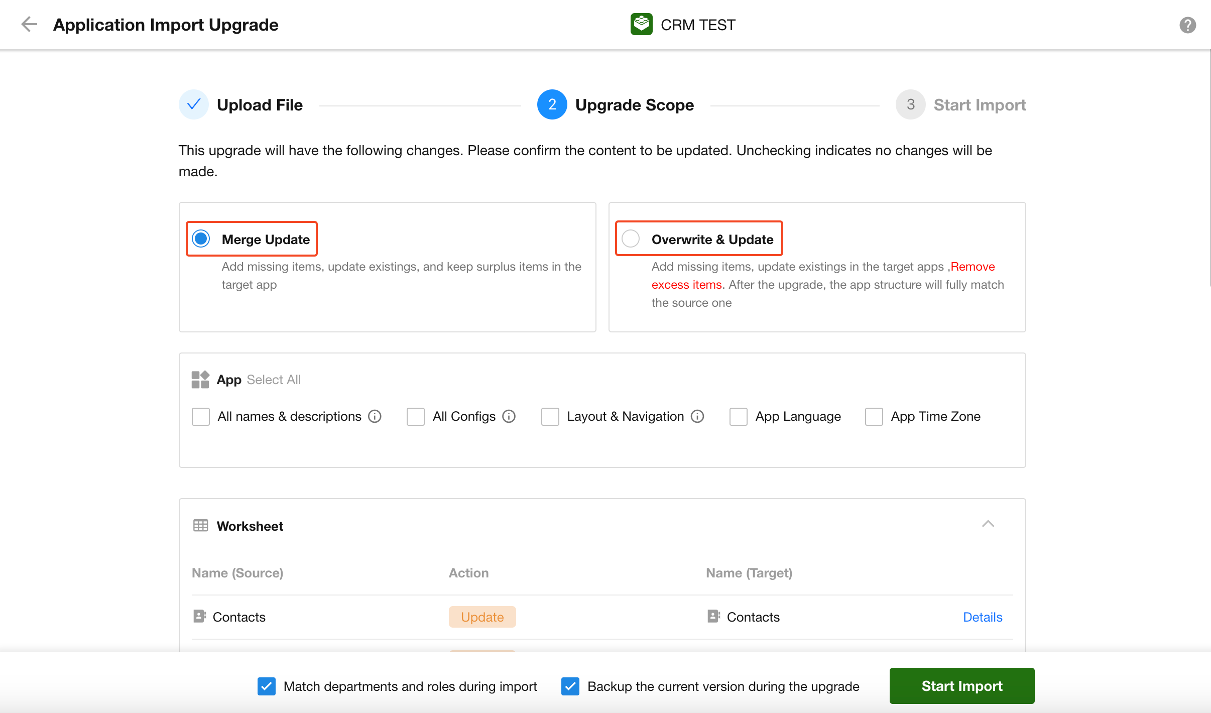 There are two upgrade methods available: Merge Update and Overwrite Update.