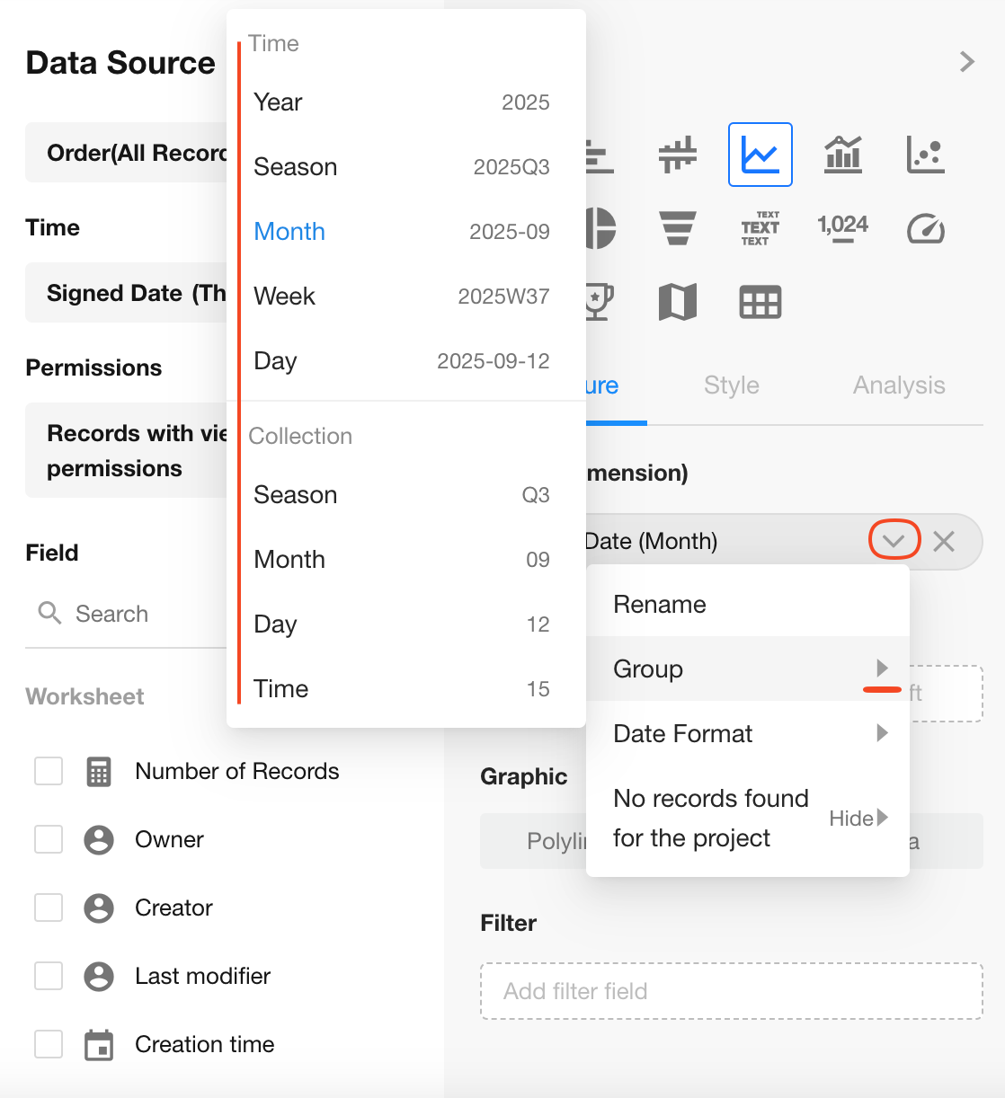 Apply a filter to include only records from the current year based on the “Signed Date” field.