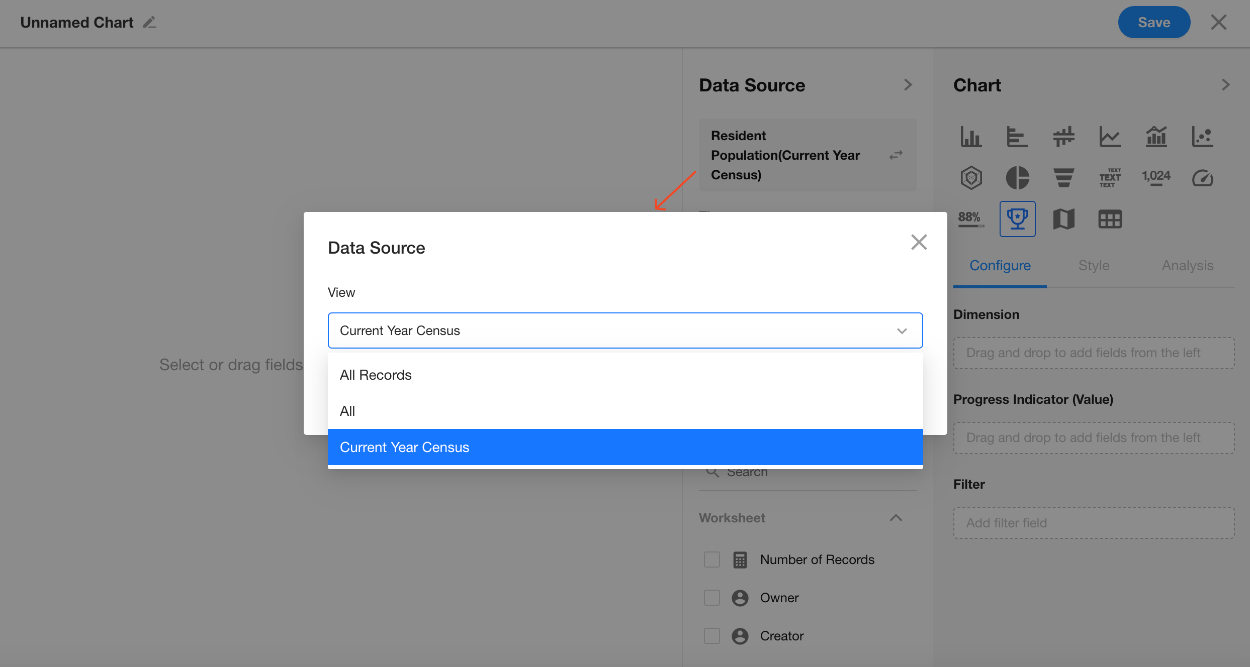Data Scope: Select the "Current Year Census" view in the Resident Population worksheet