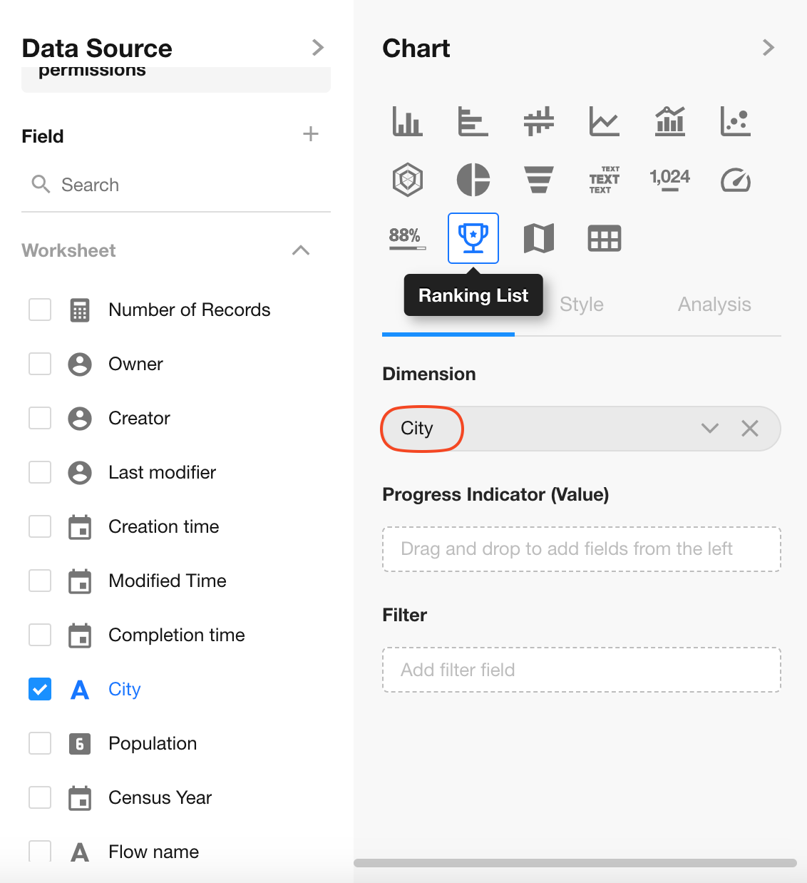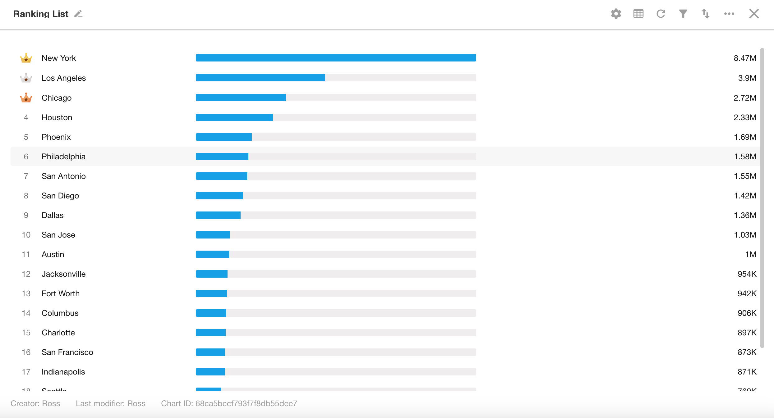 Example: Create a ranking list in the Resident Population worksheet to rank cities by population