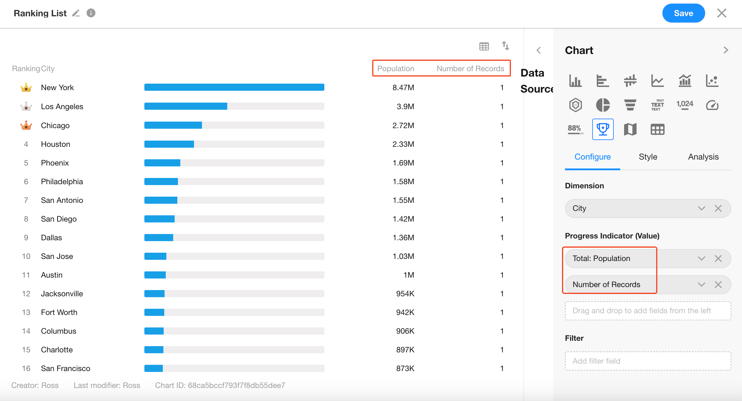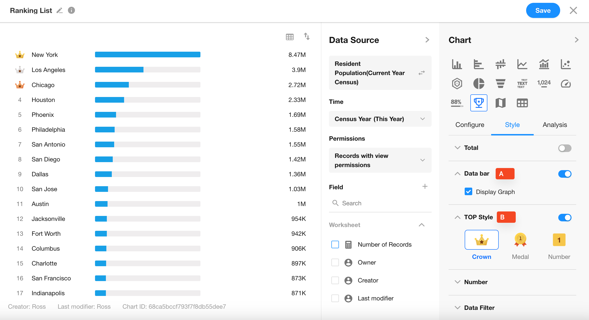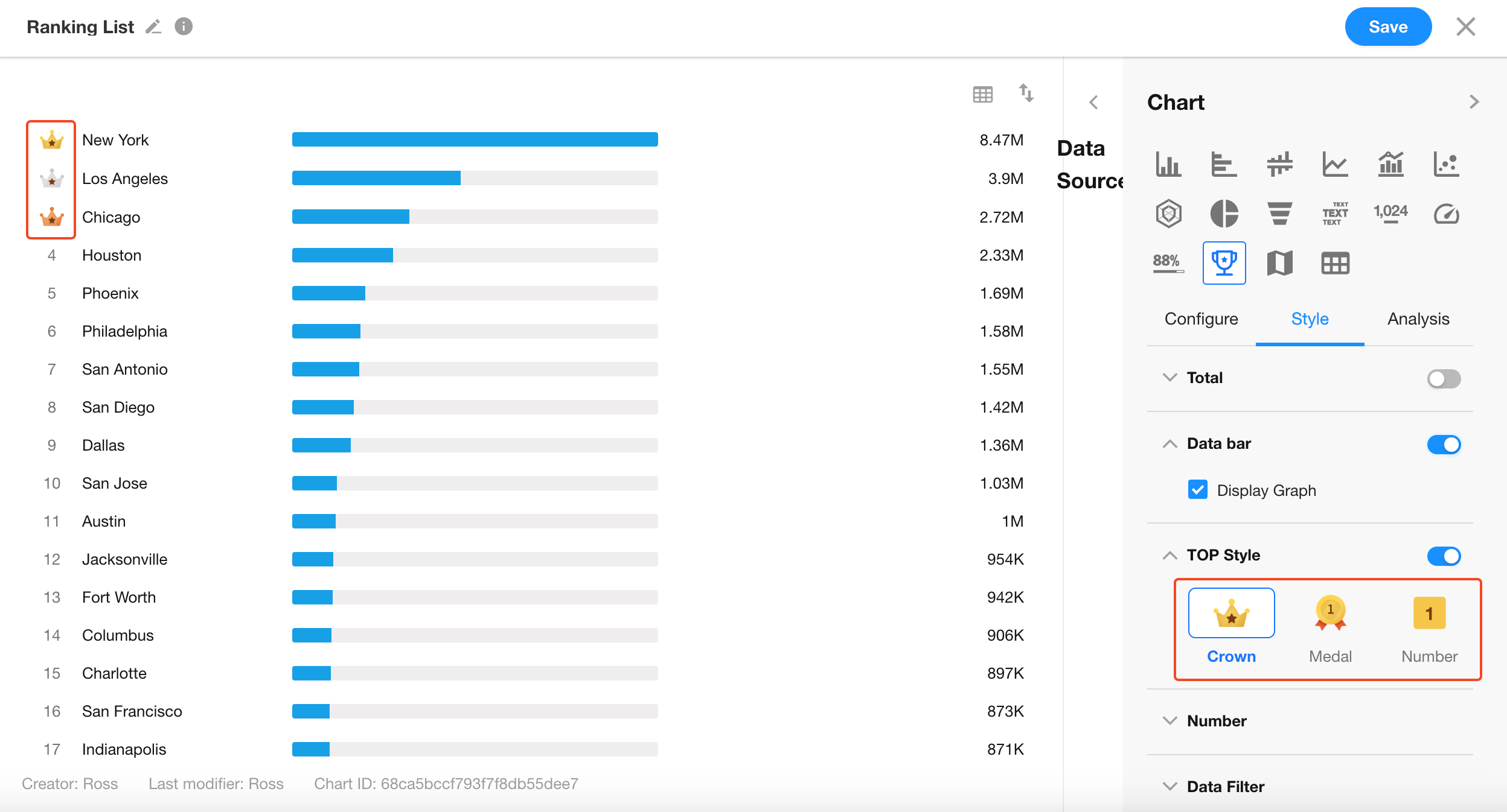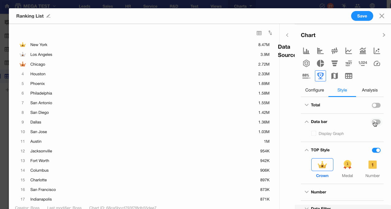 Data bars are enabled by default to visually represent the value for each ranked item.