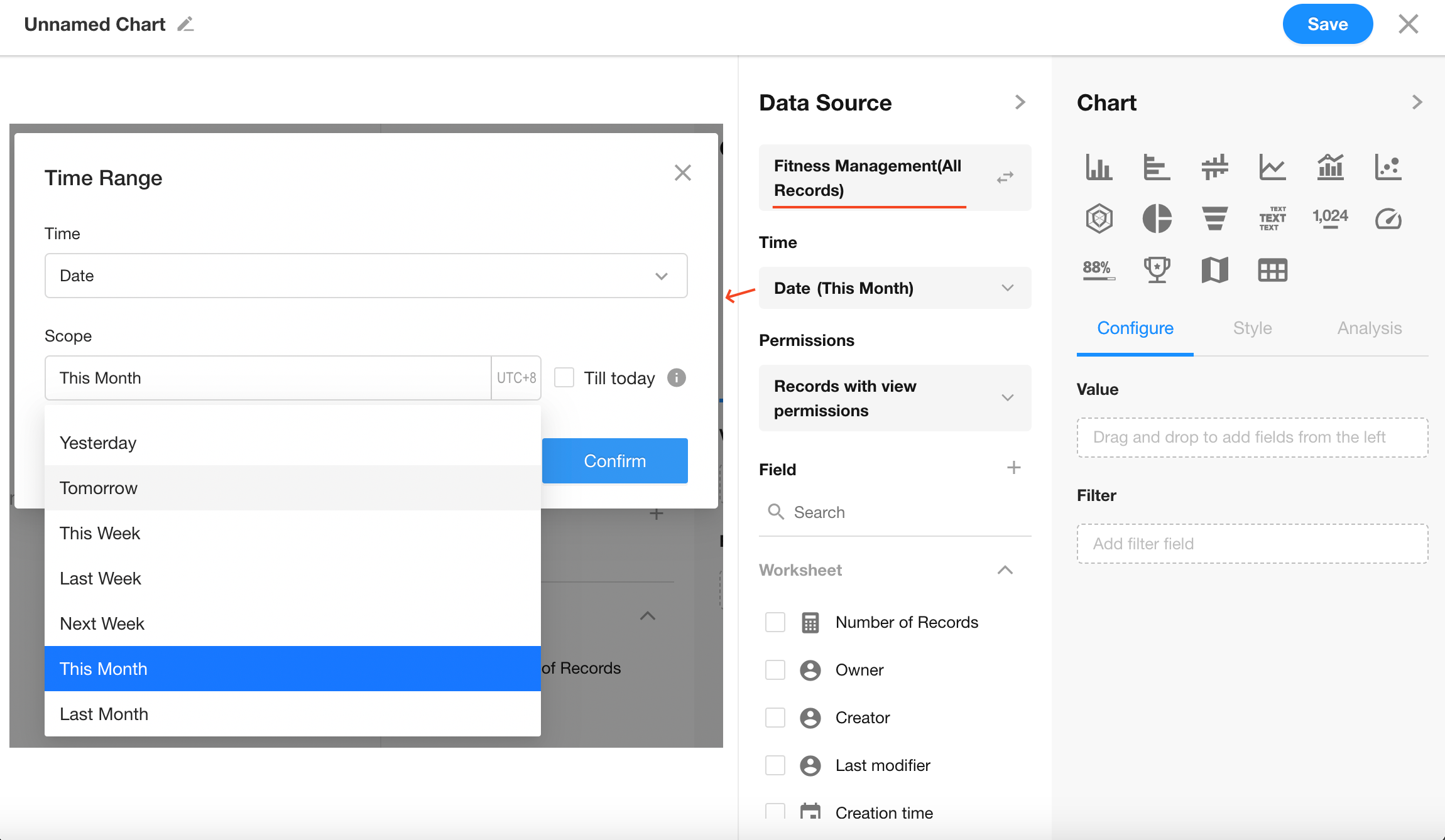 Data Scope: Filter records in the Fitness Management worksheet where the “Date” is within the current month