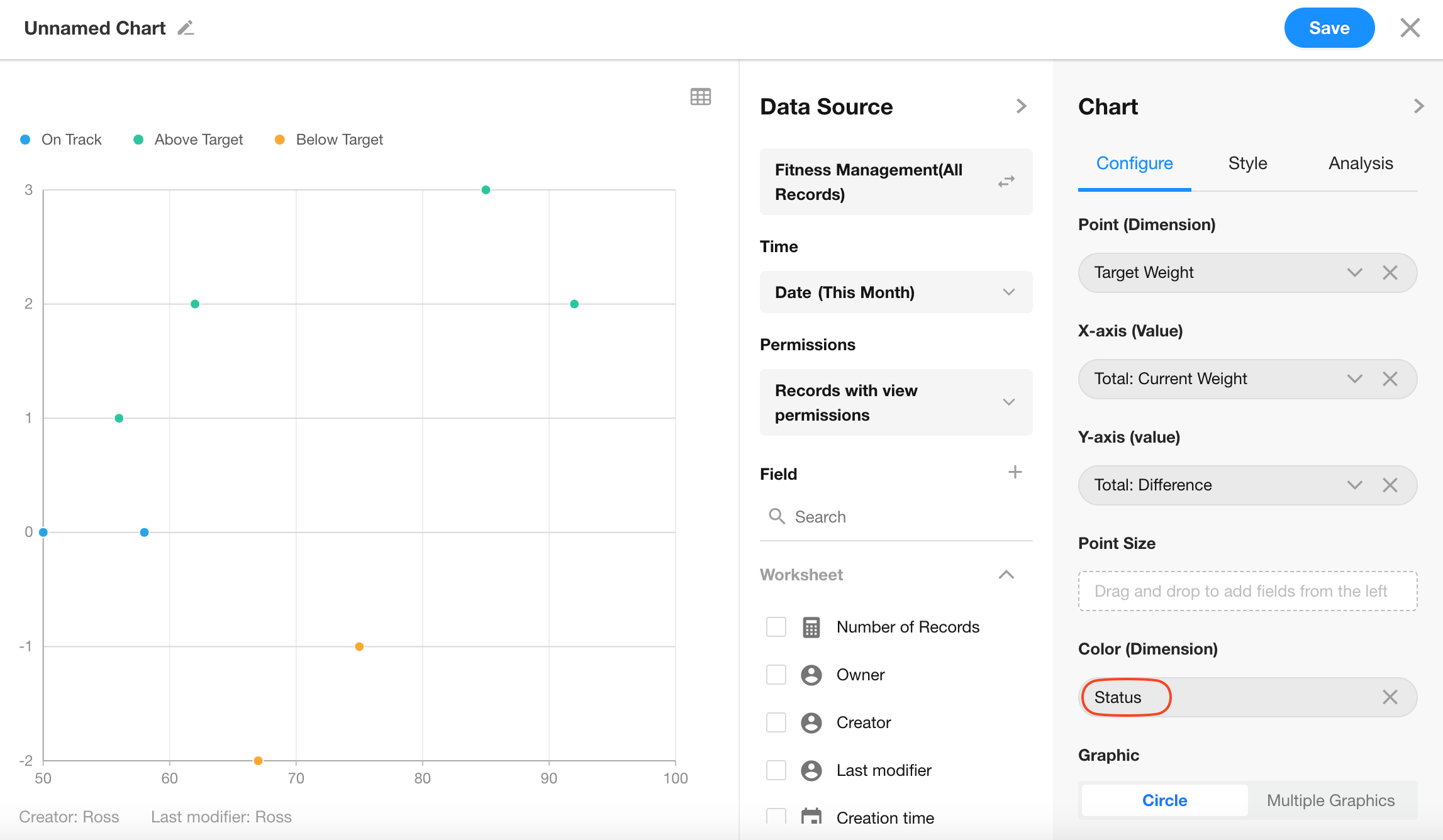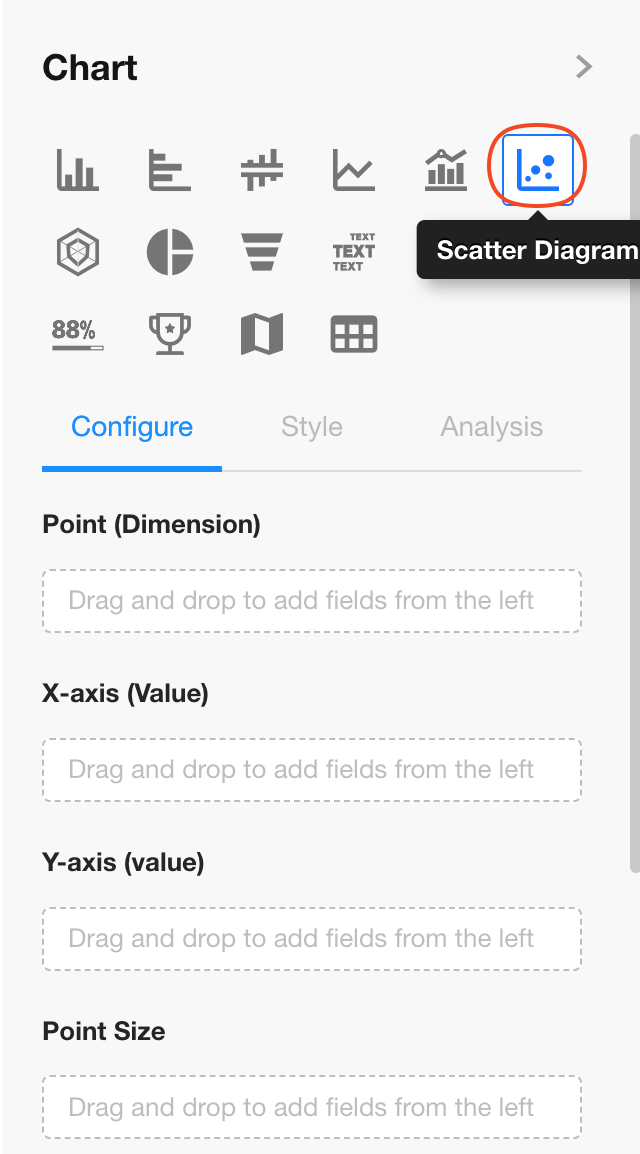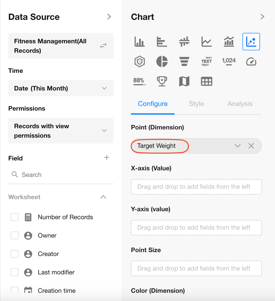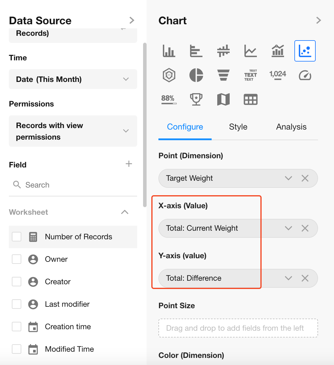 The point size is determined by a numeric field. It can be the same as the X or Y field.