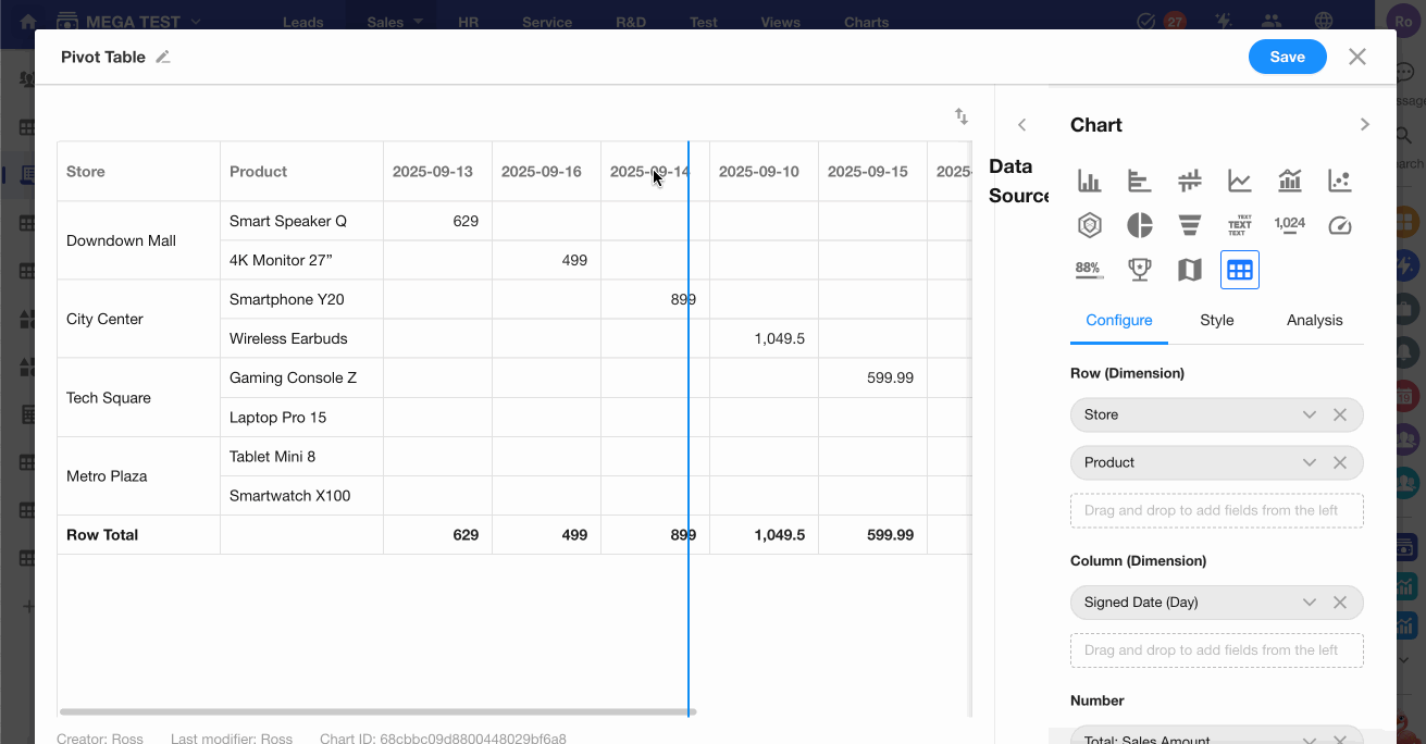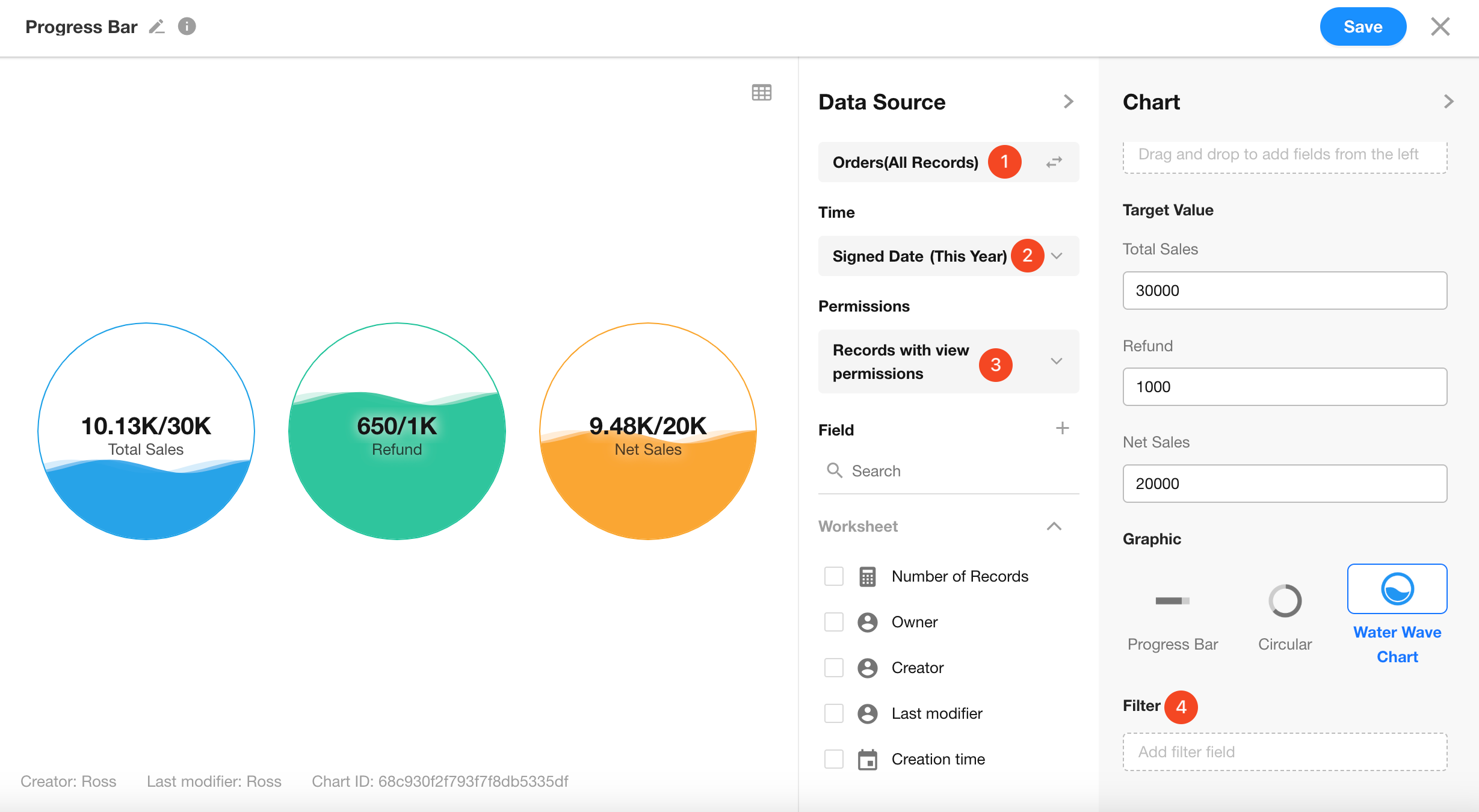 Click the icon in the top-left corner of the chart to set its name and description. Then click Save to complete the configuration.