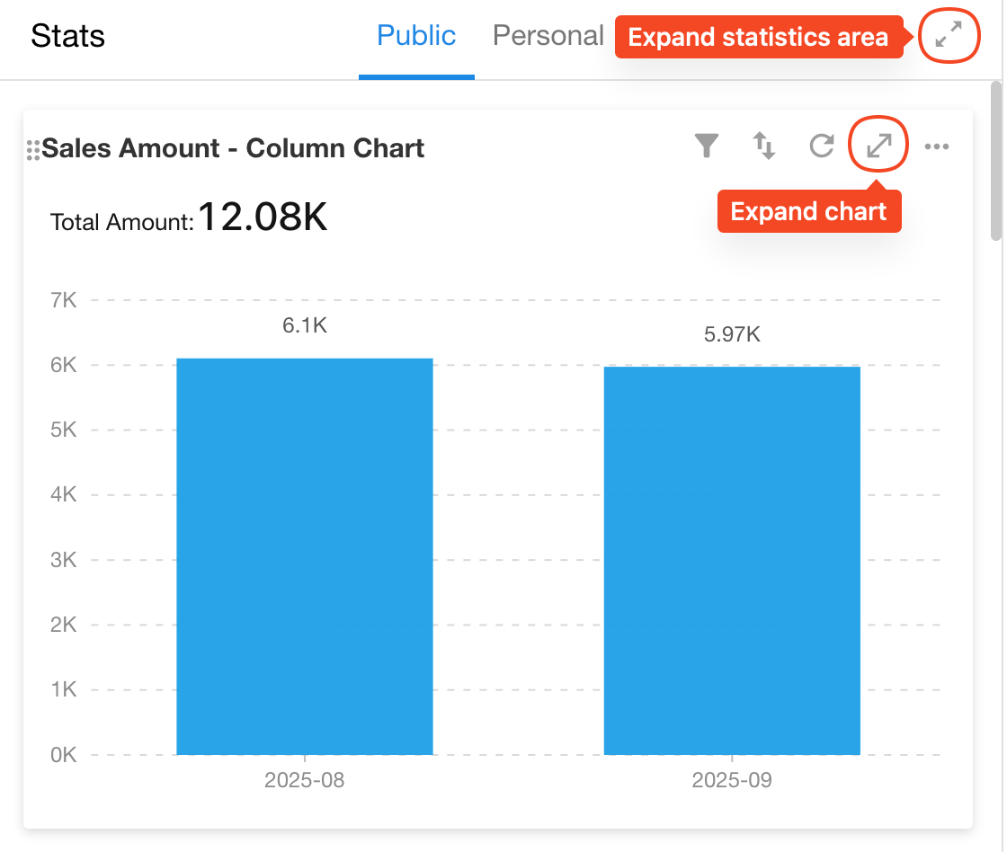 End users can perform various custom operations when viewing charts, including additional filtering, sorting, exporting, saving as images, and external sharing.