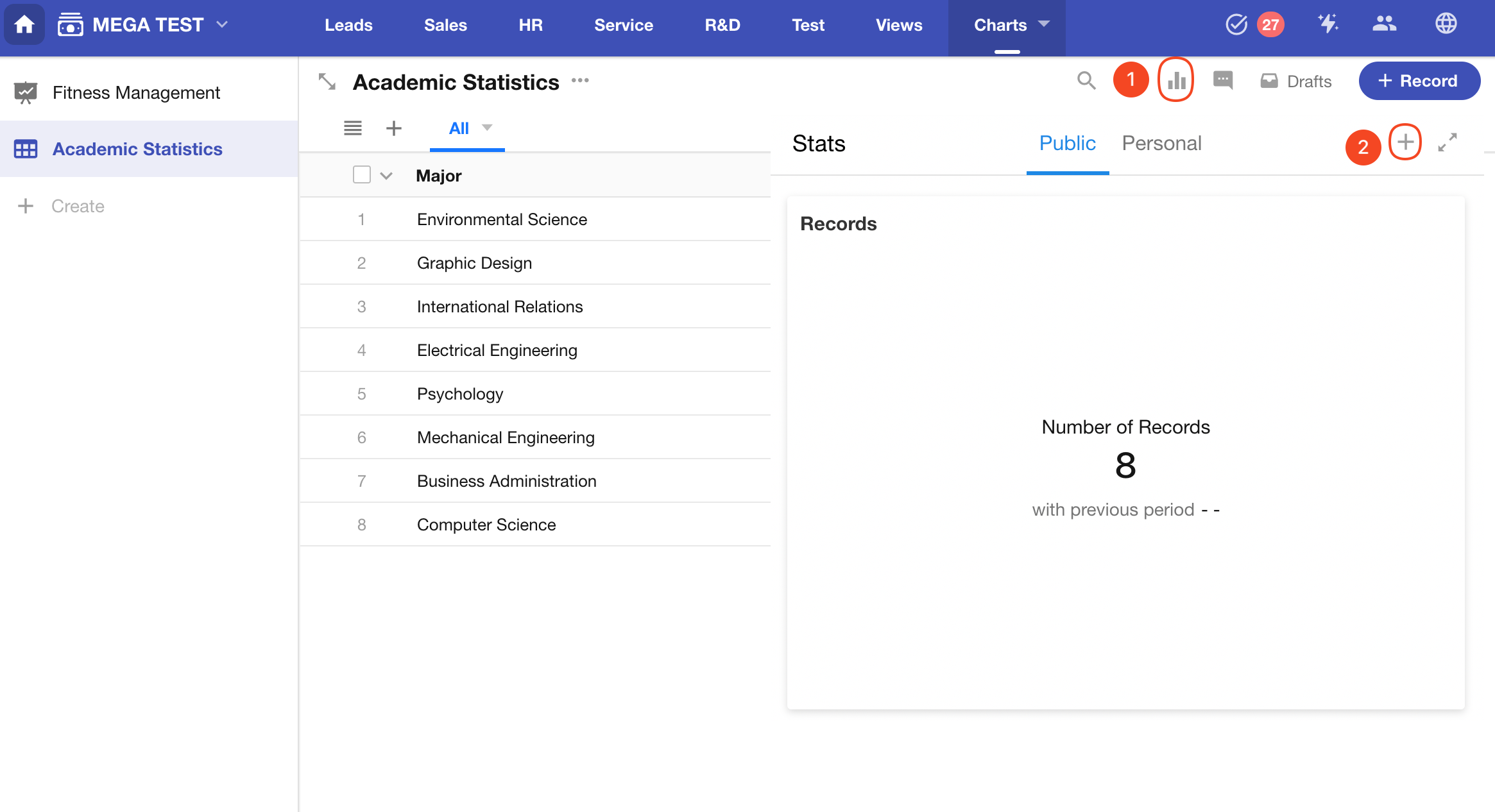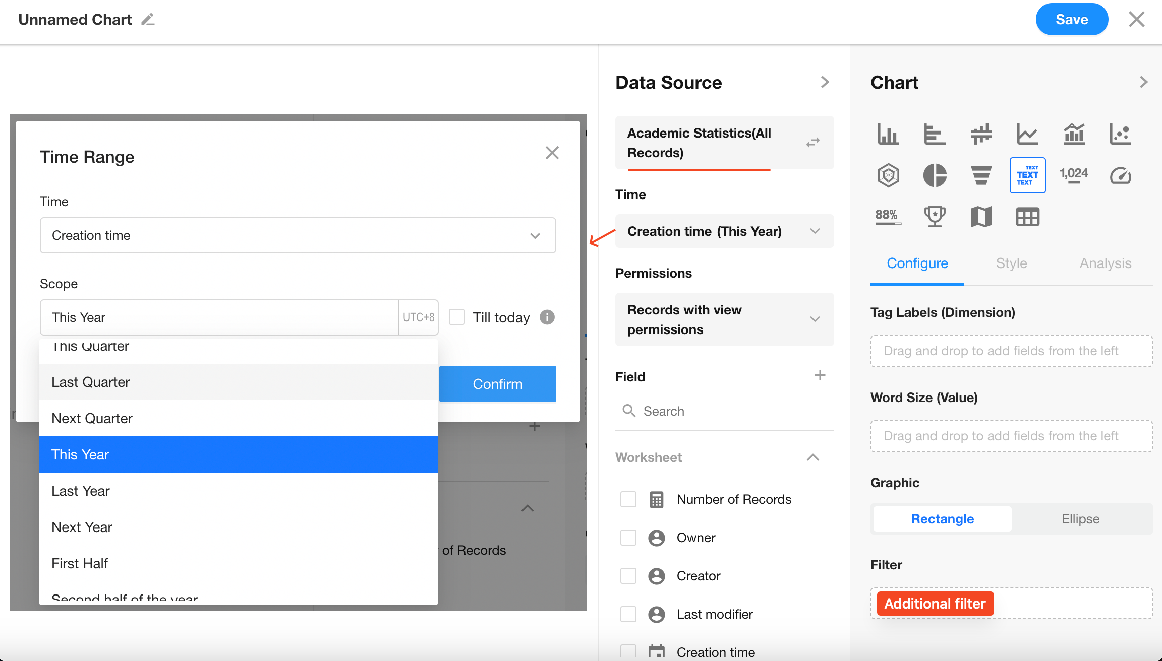 Filter records in the "Academic Statistics" worksheet where the “Creation Time” is within the current year.
