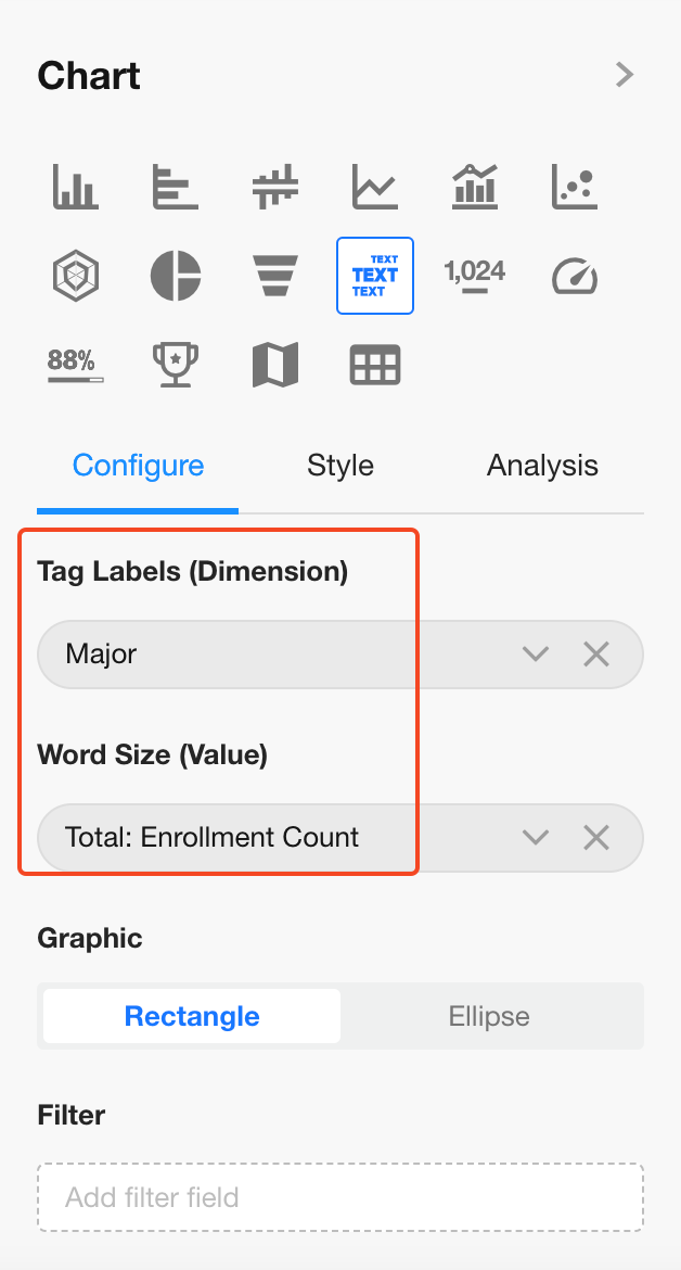 Word Size: Select the "Number of People" field (aggregated using Sum)