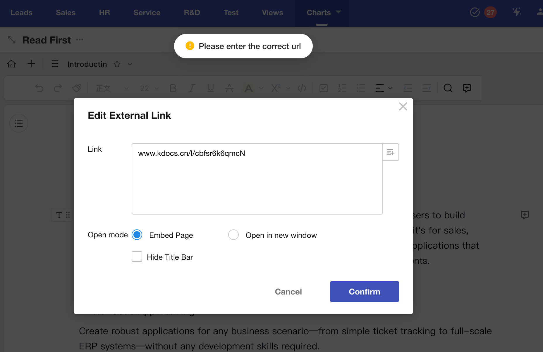 In some cases, you may need to embed an external page into your application. This could be a document or a system page from a third-party service.