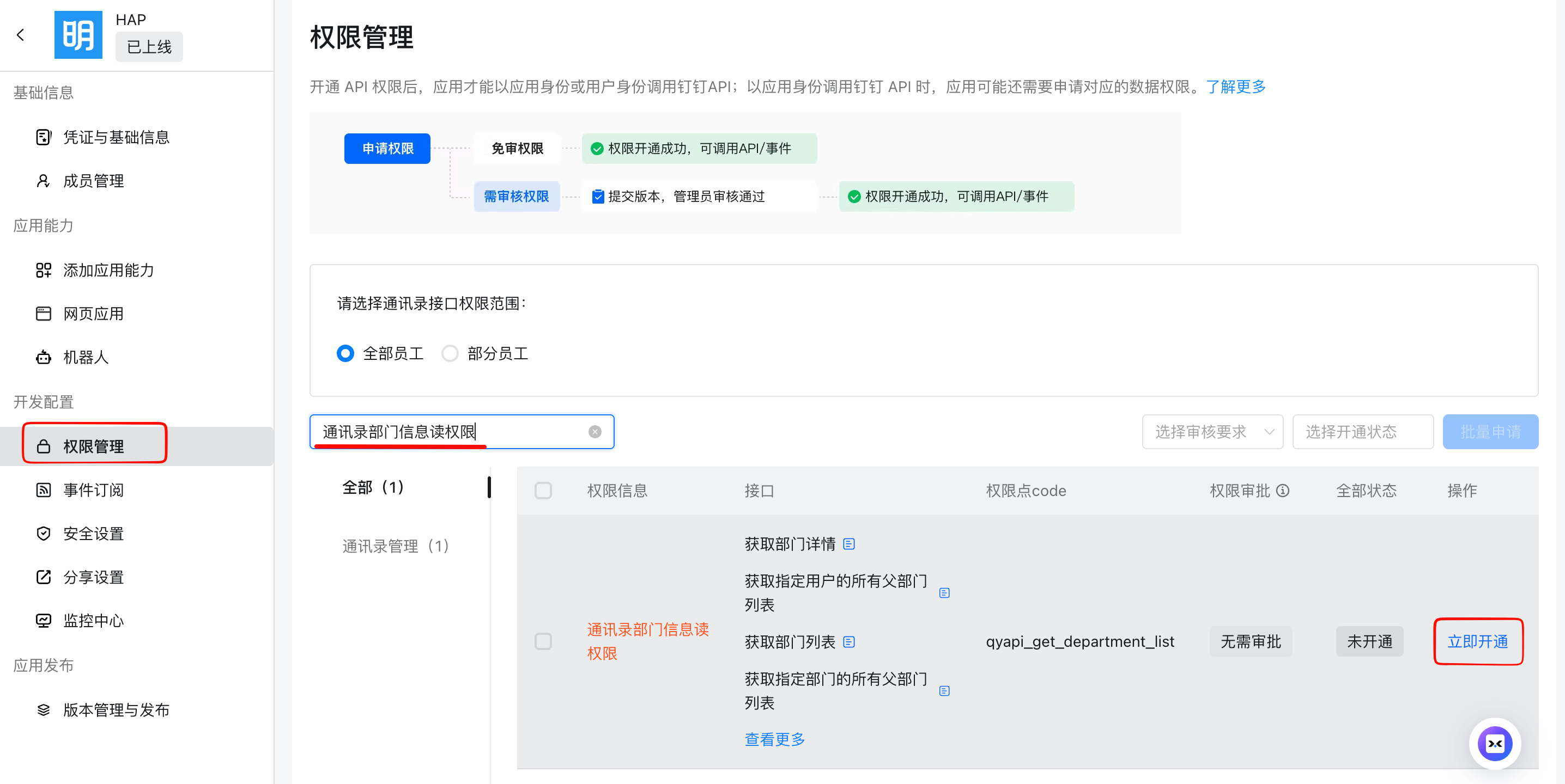 同步钉钉通讯录,完成HAP集成到钉钉。