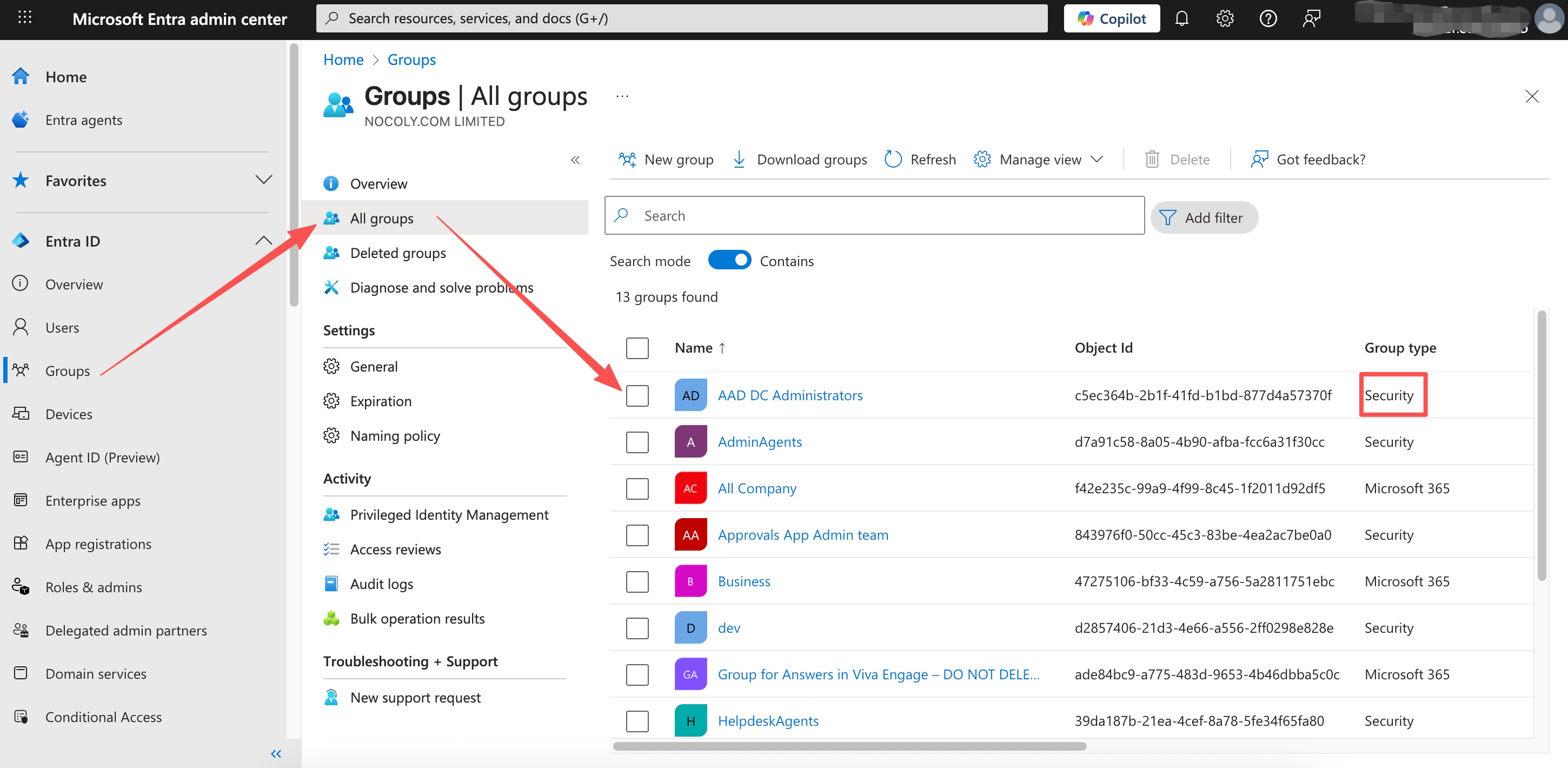 若不需要同步Entra 目录下的全部成员时,可在 Microsoft Entra 后台选择组类型为 "Security" 的一个组,将需要同步的成员加入到这个安全组内即可。