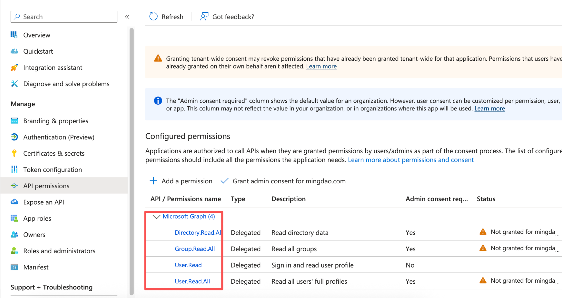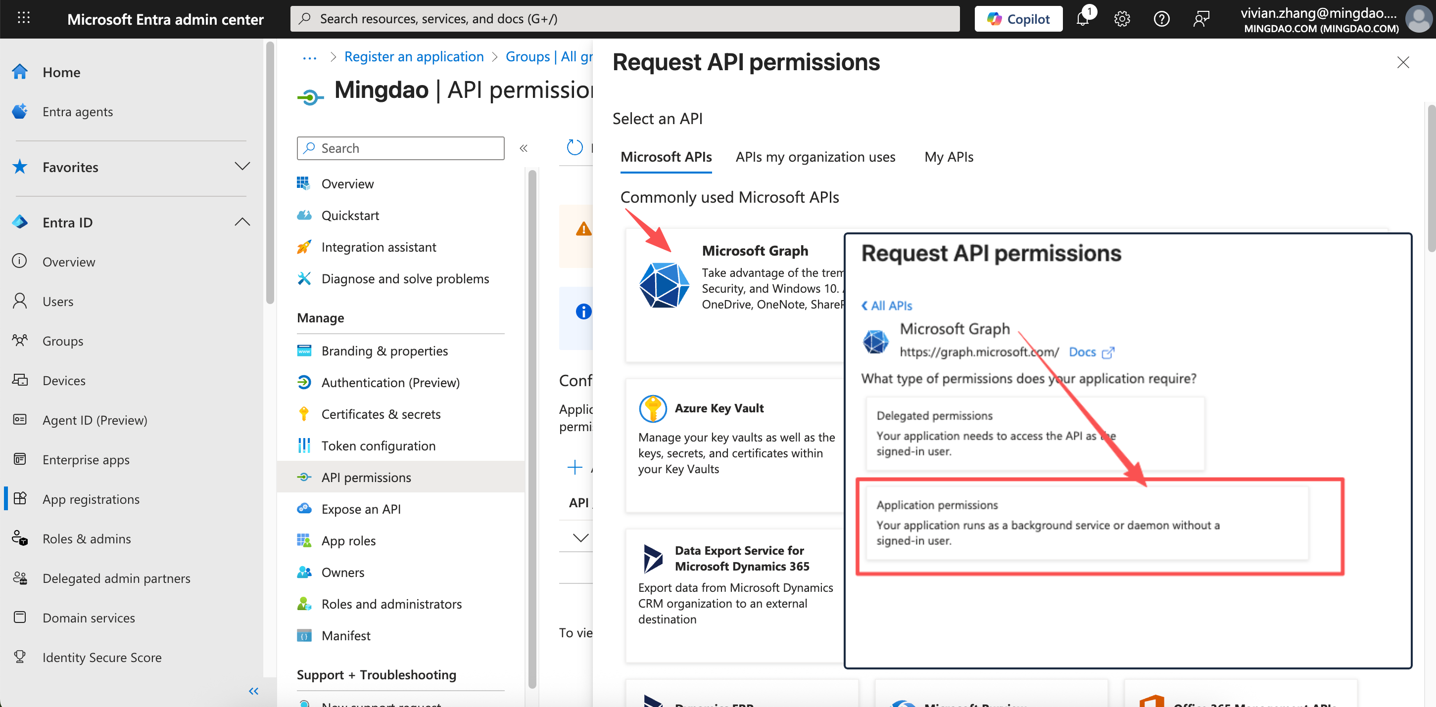 点击 Microsoft Graph,按照下面页面将页面内的权限,点击勾选即可。
