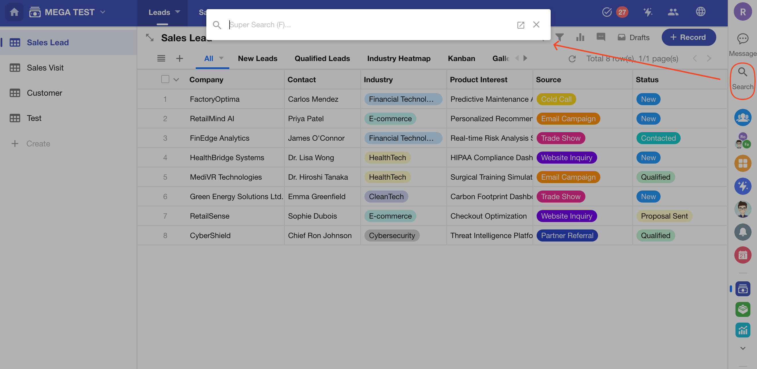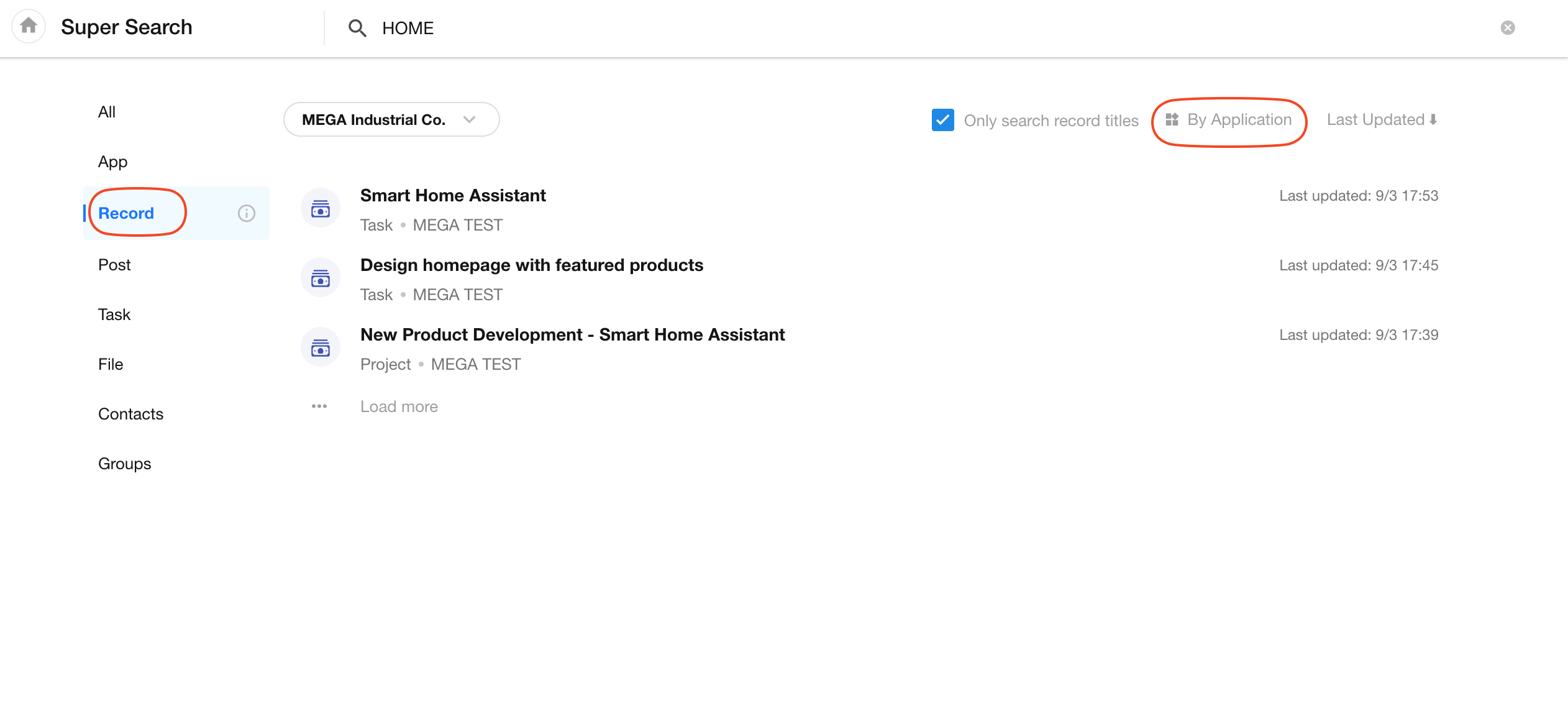 Super Search Engine (SSE) is a unified entry point for quickly searching content across the entire platform. It allows you to search across all apps, records, posts, tasks, files, groups, and contacts within your organization—helping you efficiently locate target content and improve productivity.