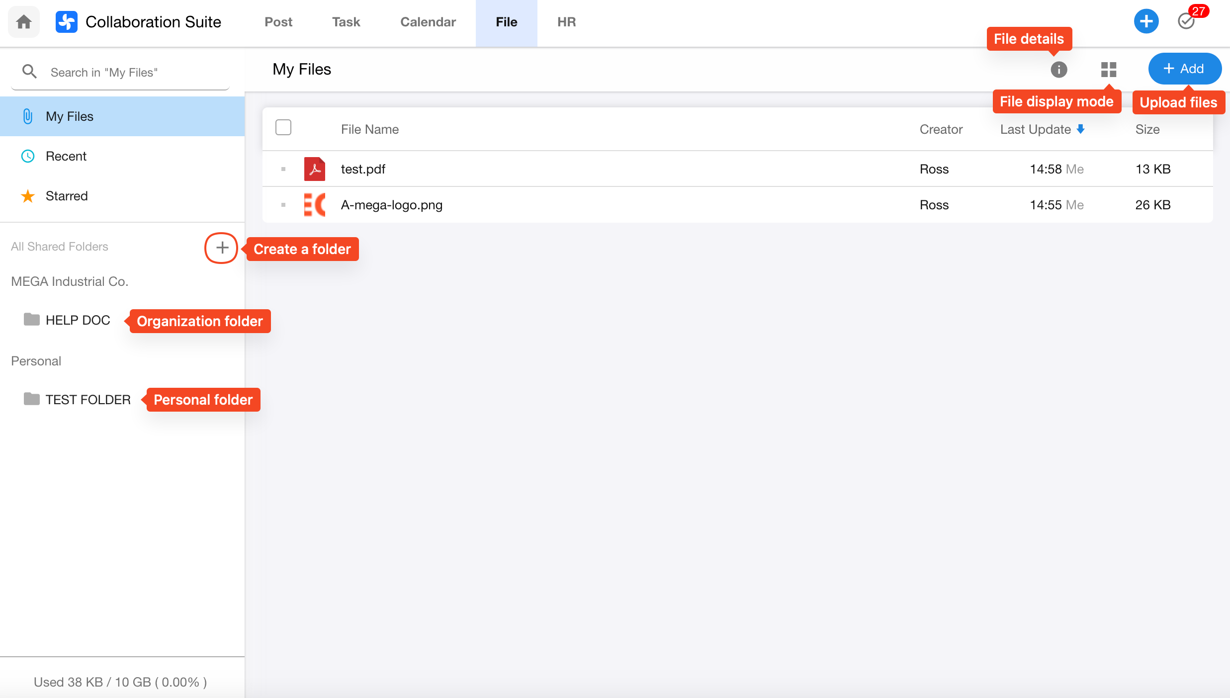 The Files module serves as your personal or organizational cloud drive. It provides a centralized platform for storing and sharing knowledge-based files across individuals, teams, and organizations.