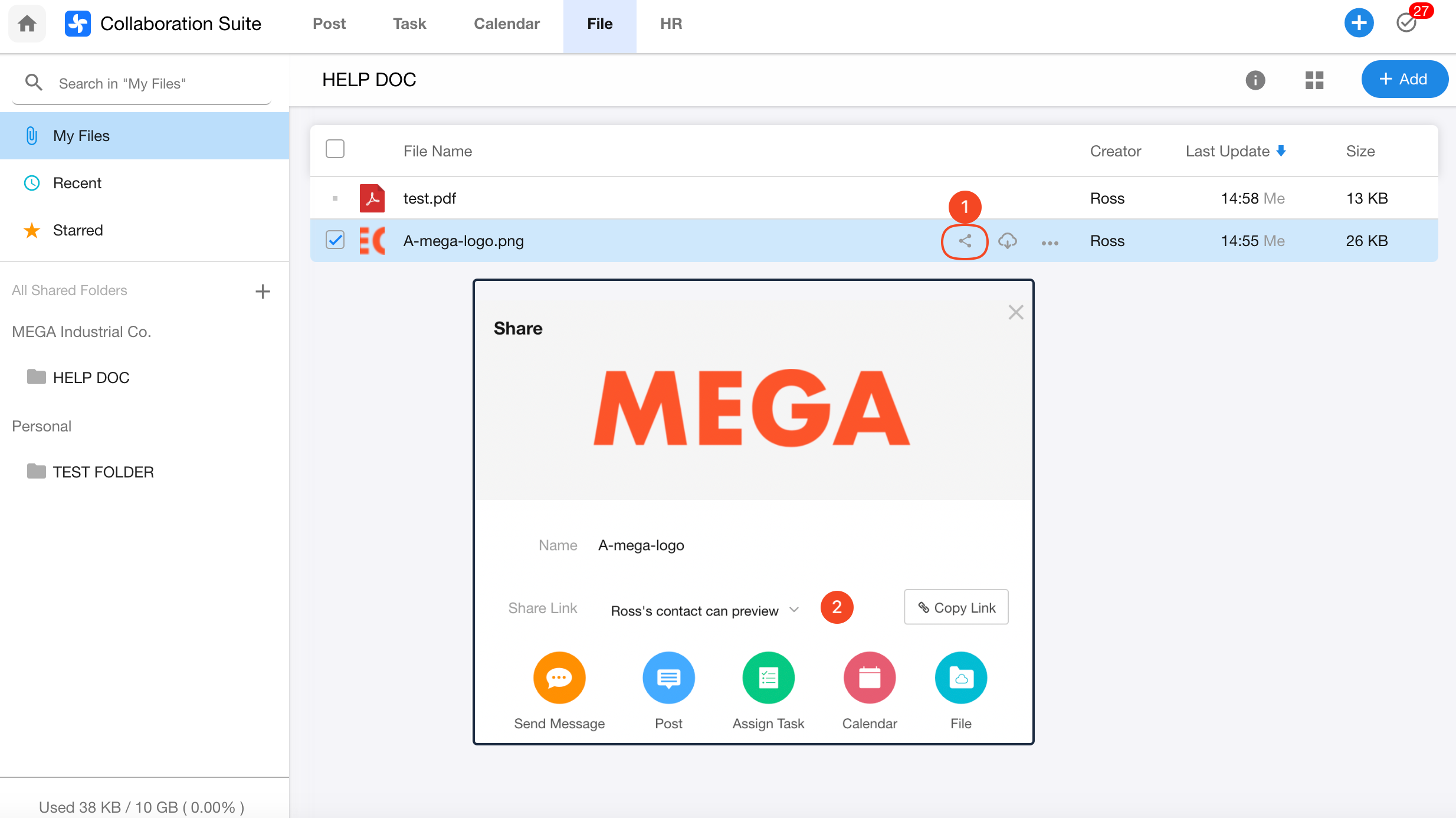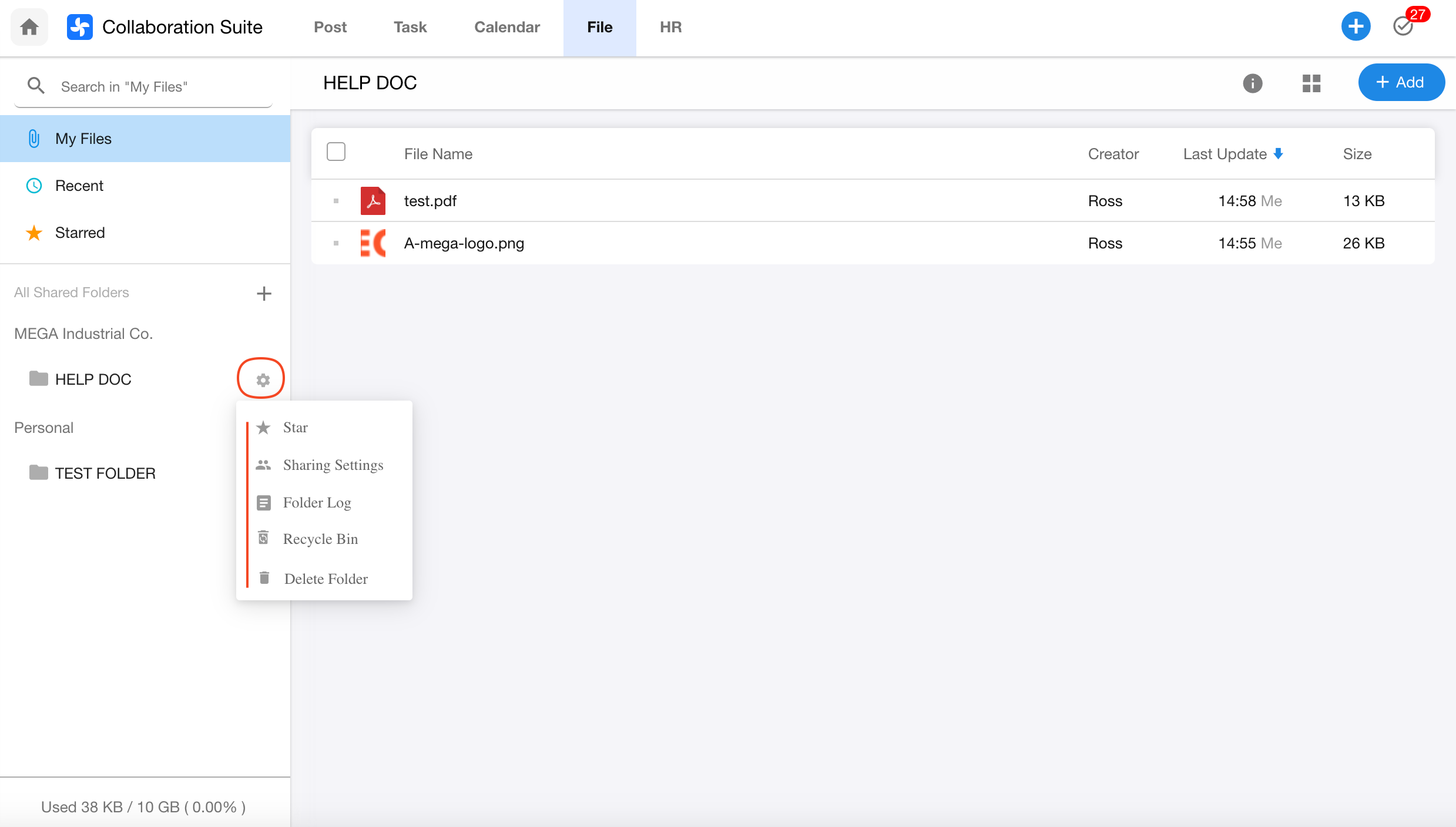- Sharing Settings: Rename folder, add/remove collaborators, change permissions, or transfer ownership.