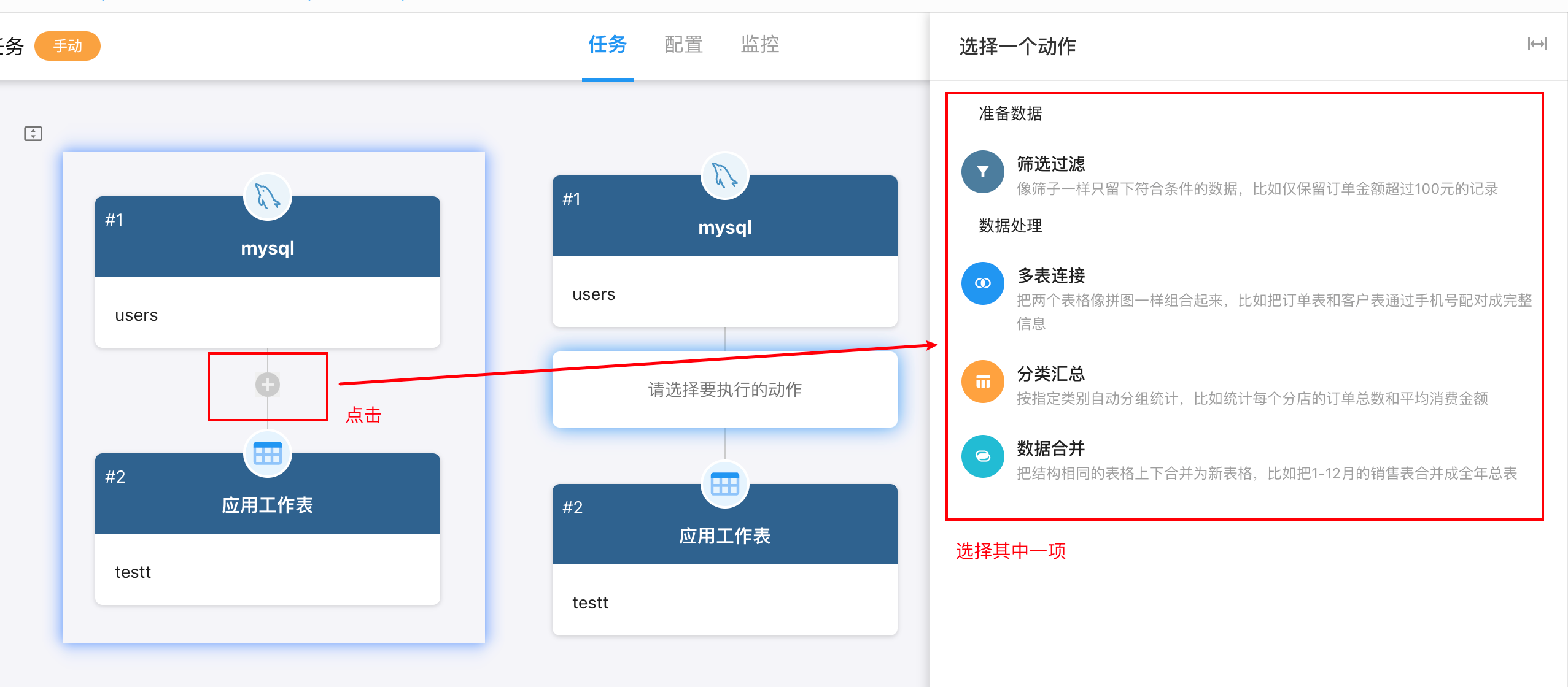 ▪ 任务:当前页面,查看任务结构、数据源配置、结果预览、历史记录等