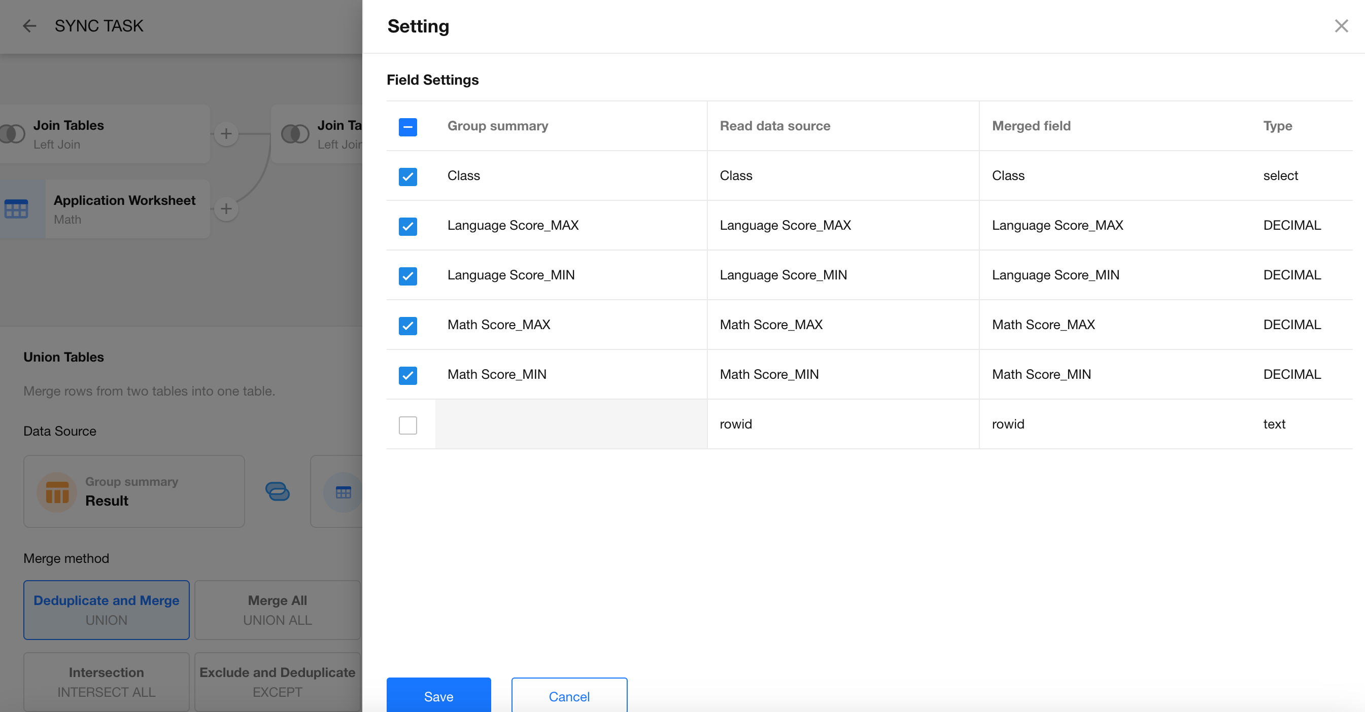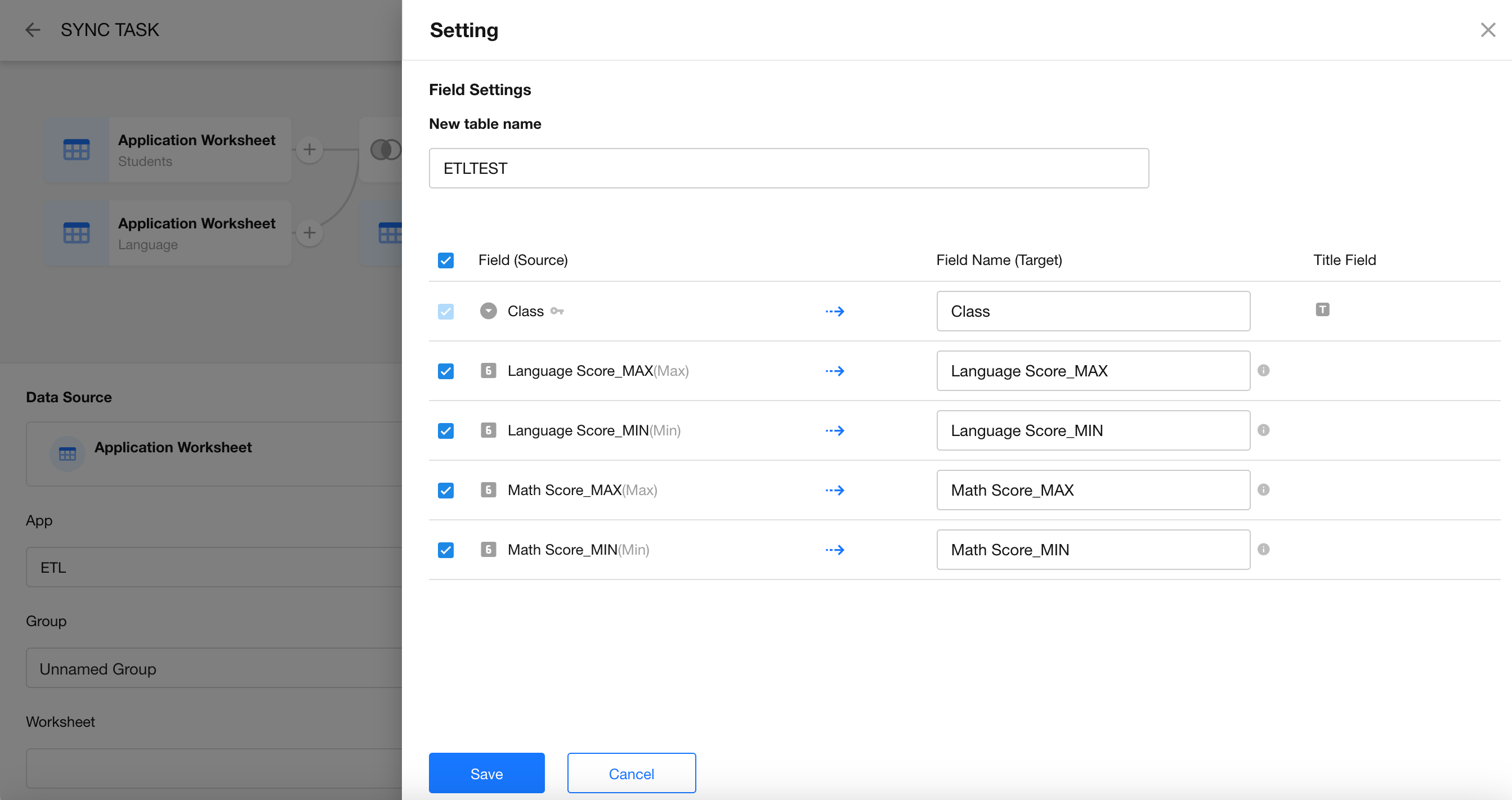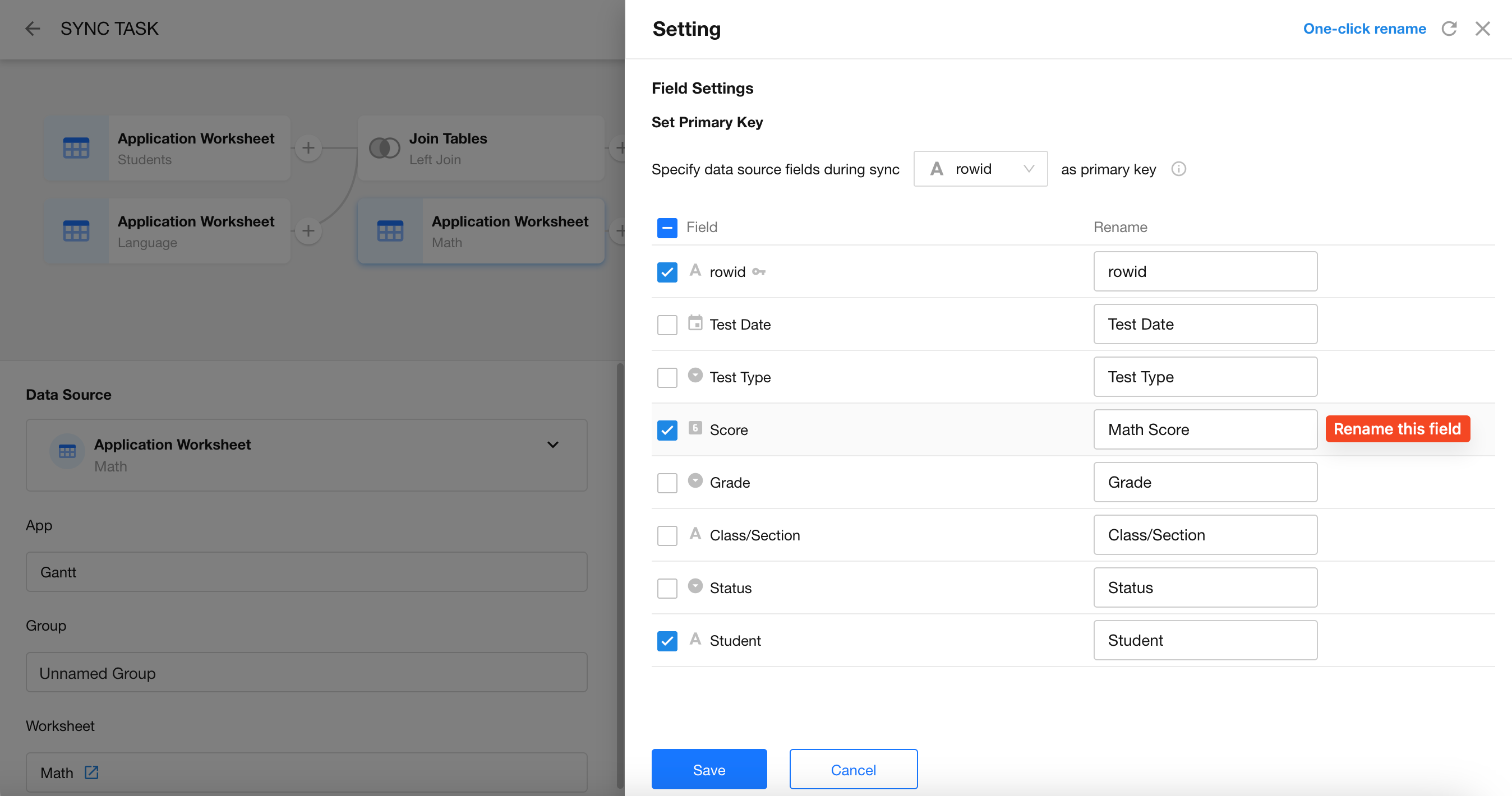 - Edit Fields: Deselect the Name field from the Math Scores worksheet if it's not needed.