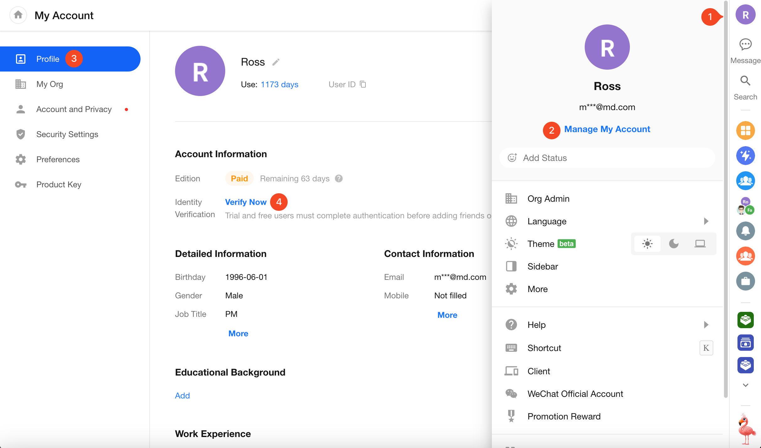 Click your profile avatar and navigate to [Manage My Account] > [Profile].