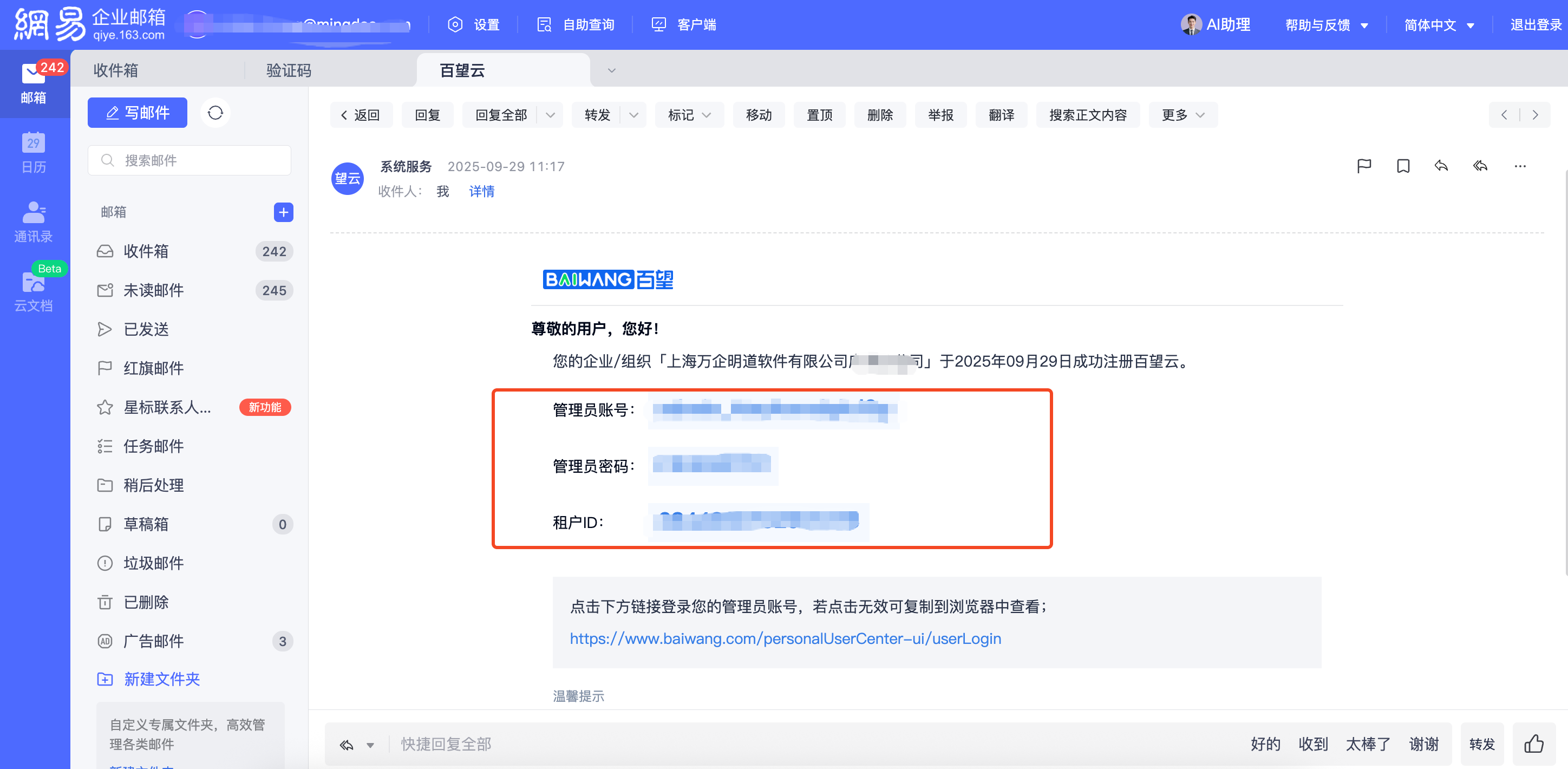 此步骤需要到百望完善企业信息及开票配置,可以在收到的邮箱点击链接或者在当前页面点击百望开票平台前往完善相关信息
