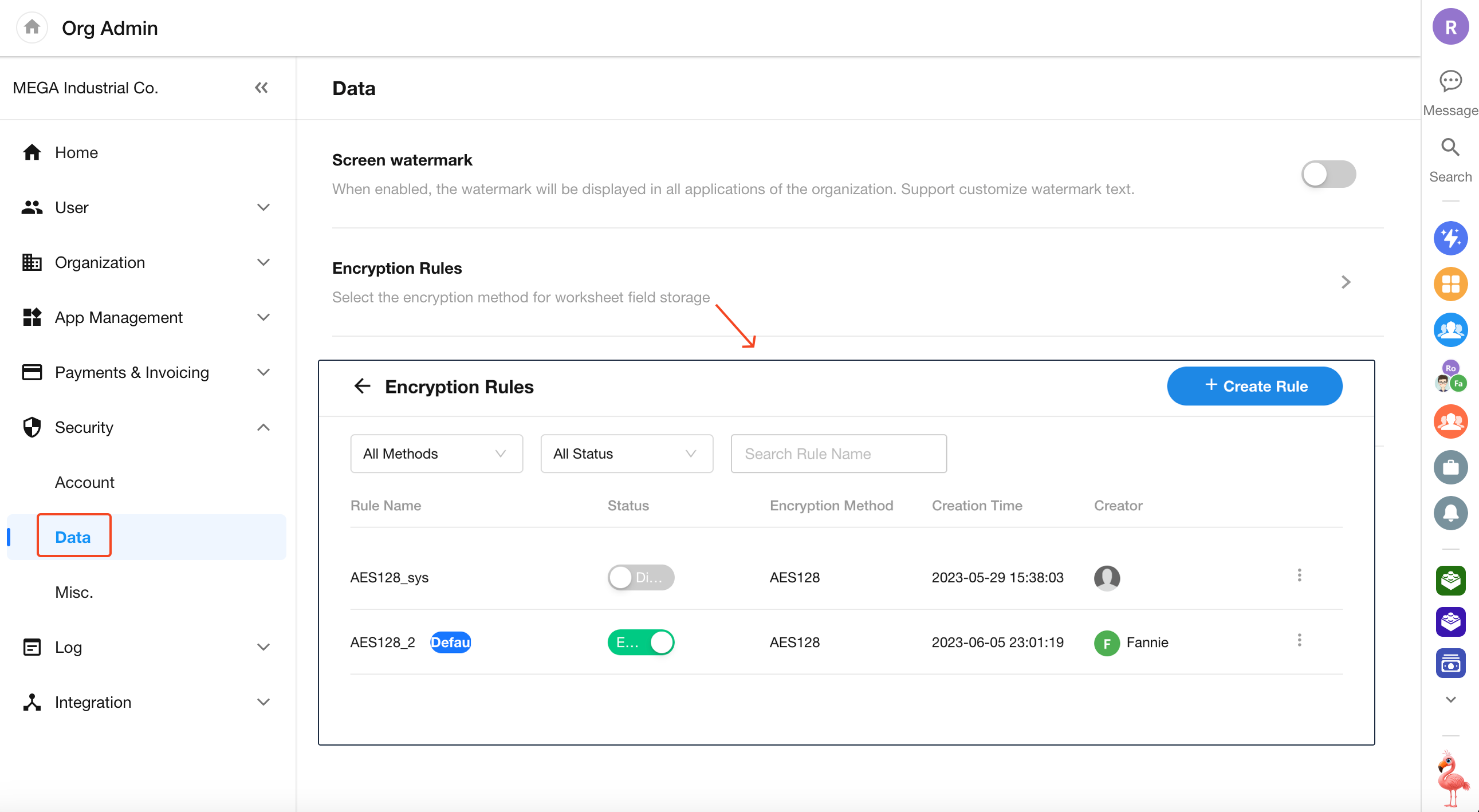 In the Security section of the Organization Management page, administrators can configure a wide range of security settings for the organization. These include:
