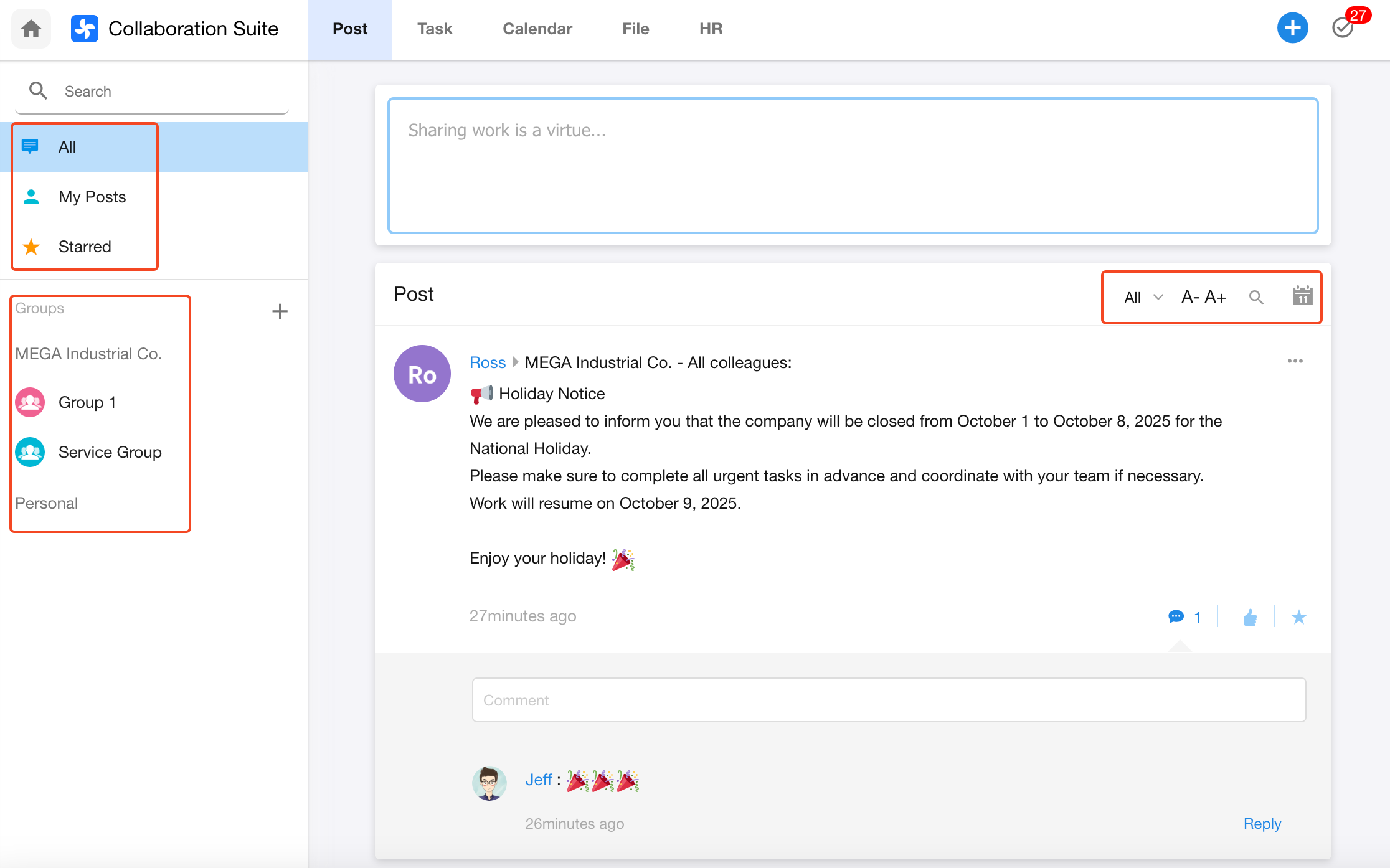 Lists all the groups you’ve joined. Click a group to view posts visible to that specific group.