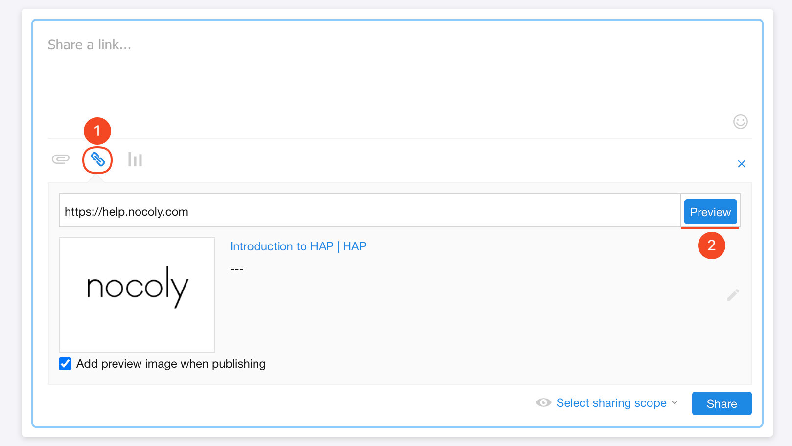 Paste a URL directly into the post text box.