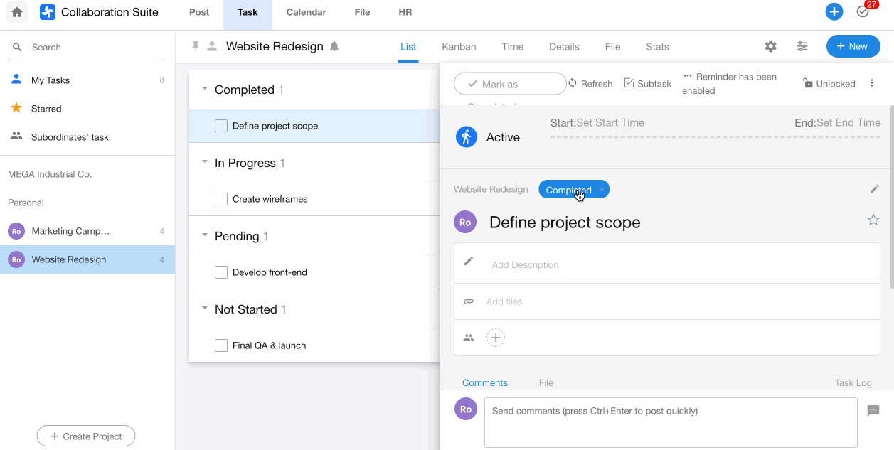 If the task is not linked to any project or parent task, the red box will show the network or collaboration it belongs to.