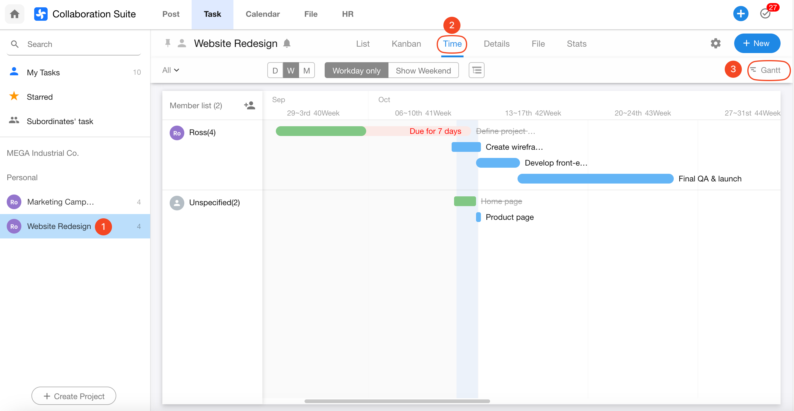 Click on any task bar in the Gantt view to open the task details for editing. After making changes, click Refresh to update the Gantt chart.