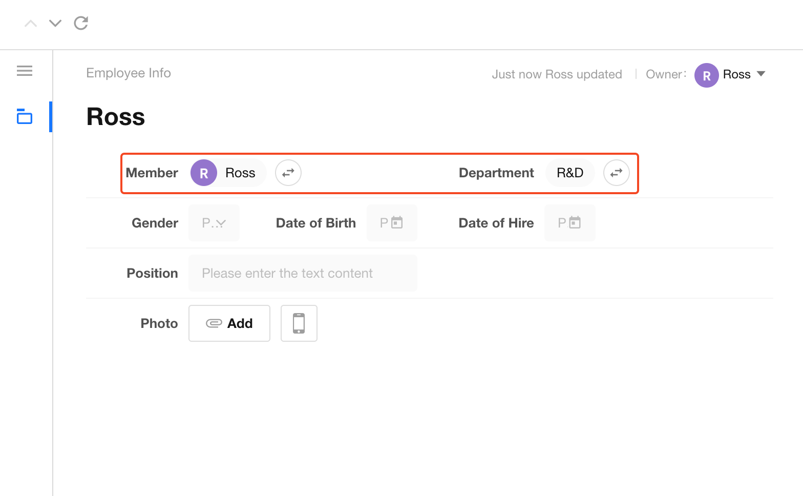 You can build a employee information worksheet to maintain member data for the entire company, a specific department, or a project team. This worksheet should be regularly updated to stay in sync with the organization backend.