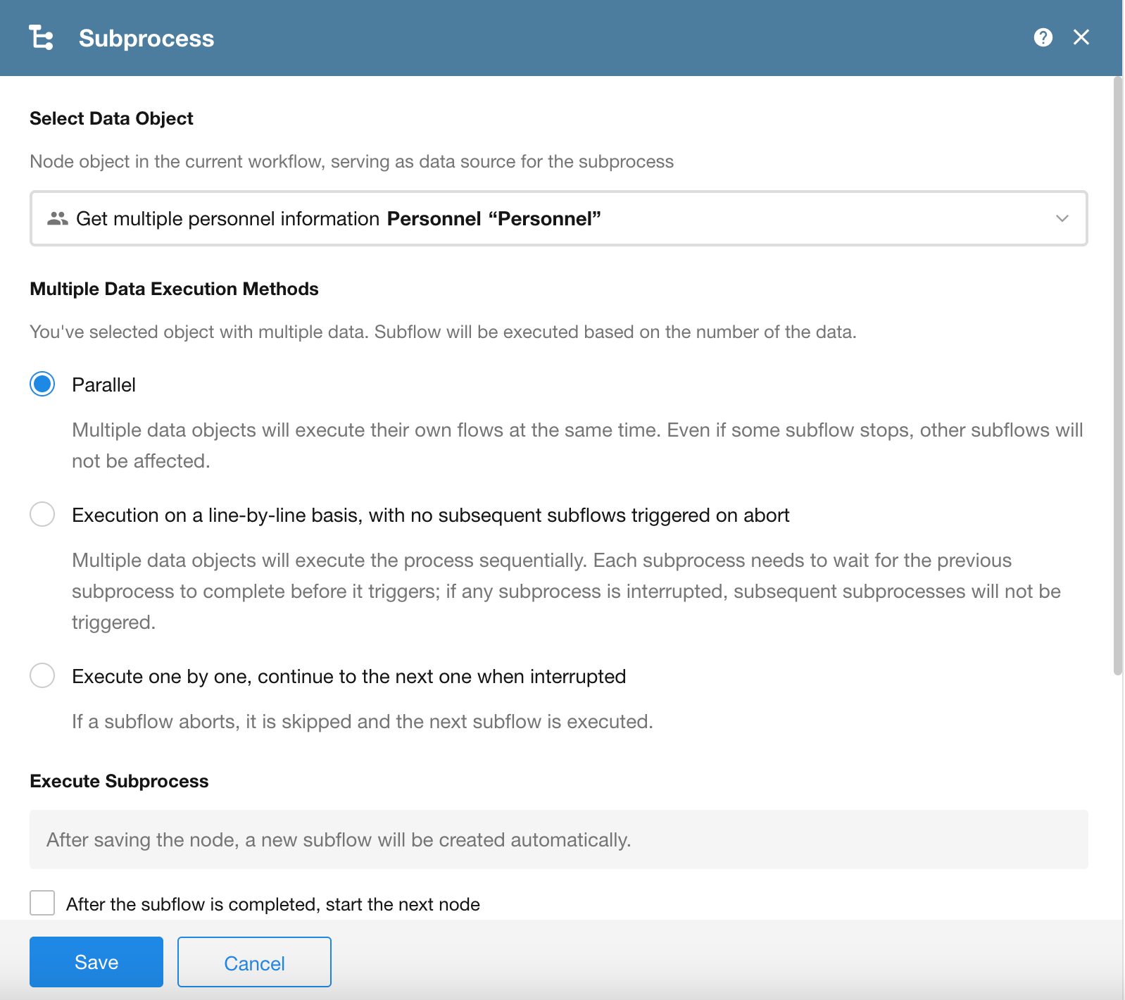 2. Add a “Get Multiple Personnel” node and choose to retrieve data from organization members