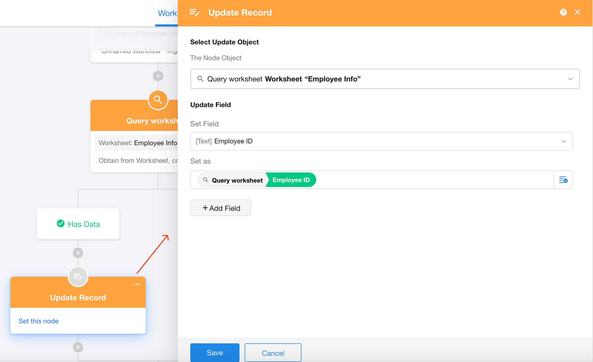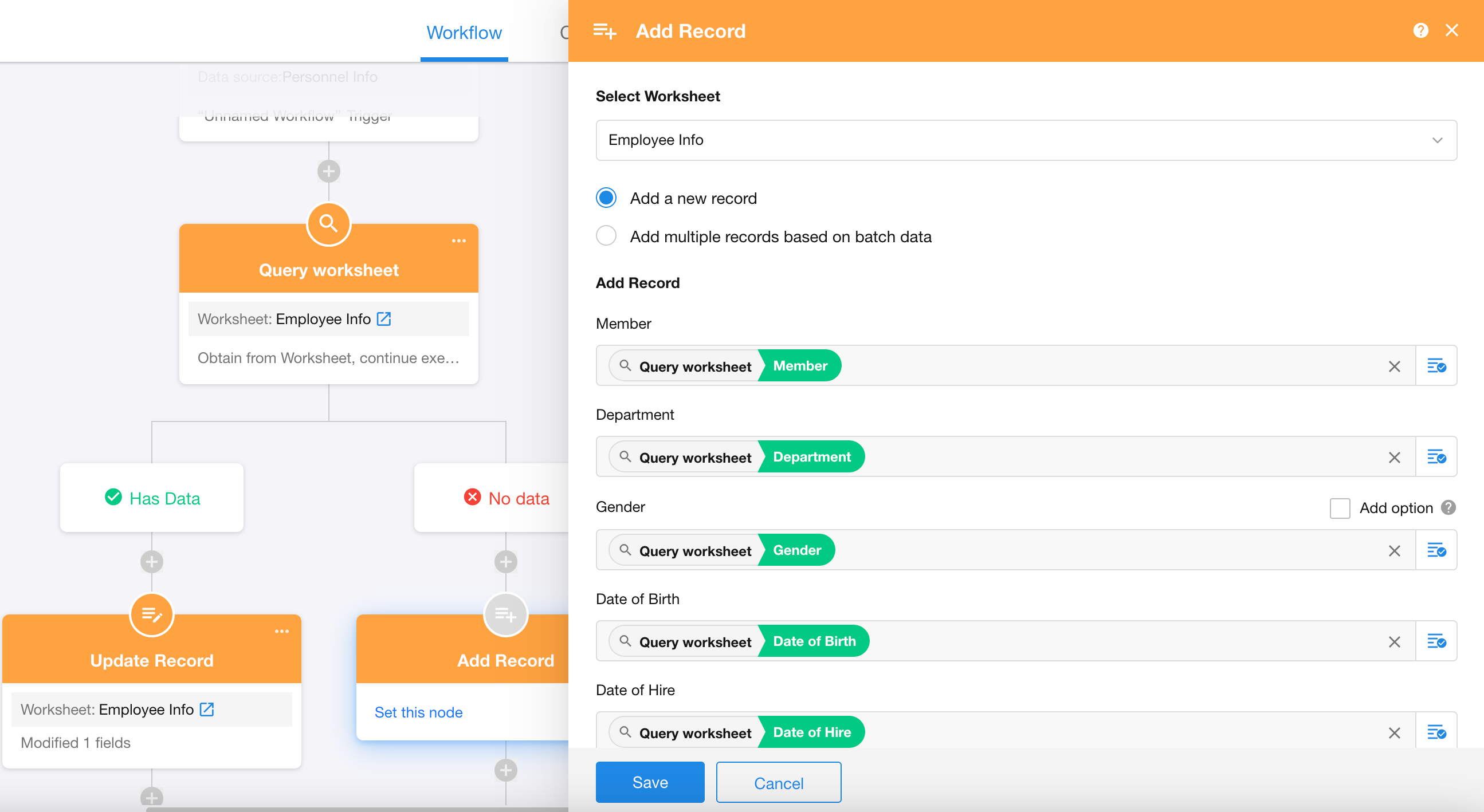 4. Use a sub-process to update existing records or add new ones to the worksheet