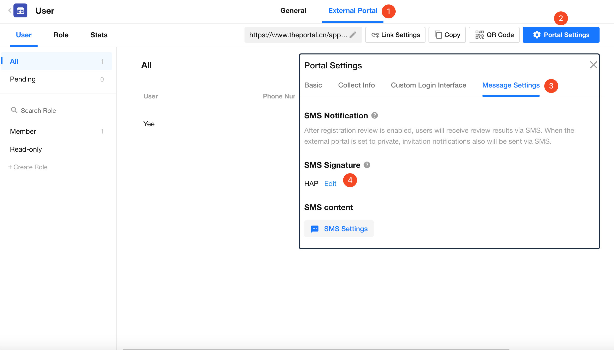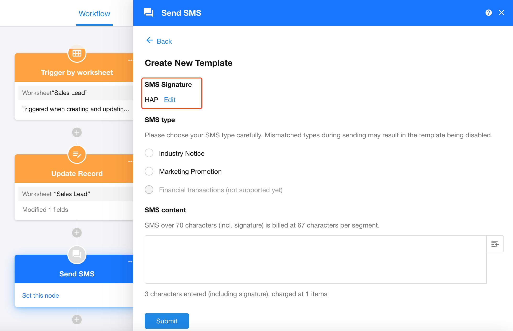 To modify your SMS signature, you must first complete Organization Verification on the HAP platform.