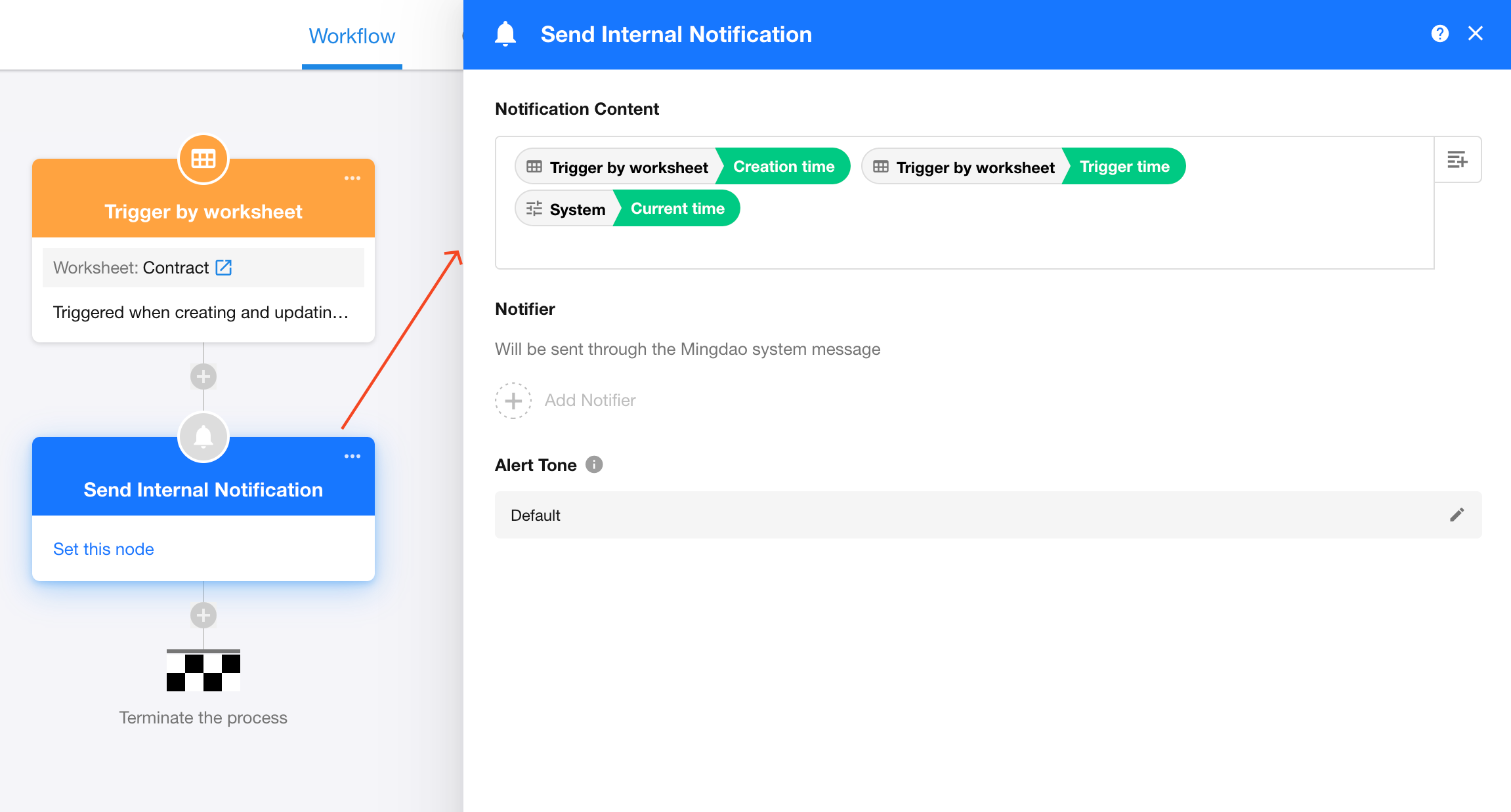 - The Trigger Time of a workflow node