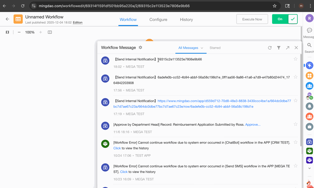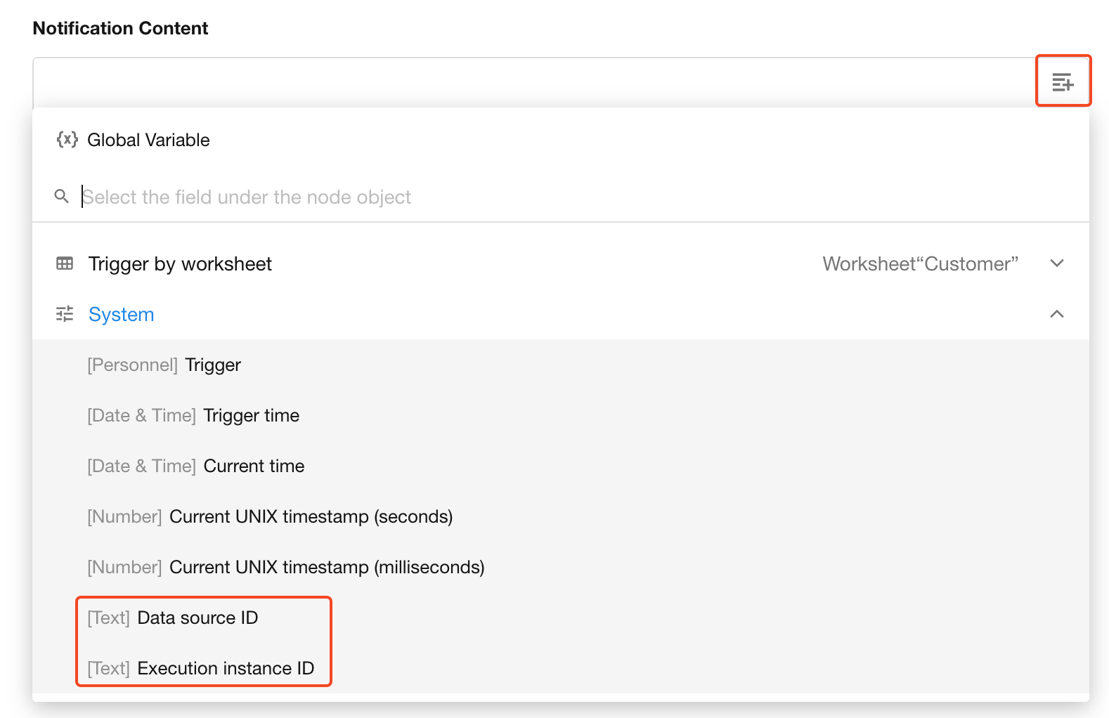 In some cases, it's necessary to know which record triggered the current workflow instance, when it was triggered, and who the trigger user was. This information can be retrieved from the Data Source ID and Execution Instance ID in the workflow node.