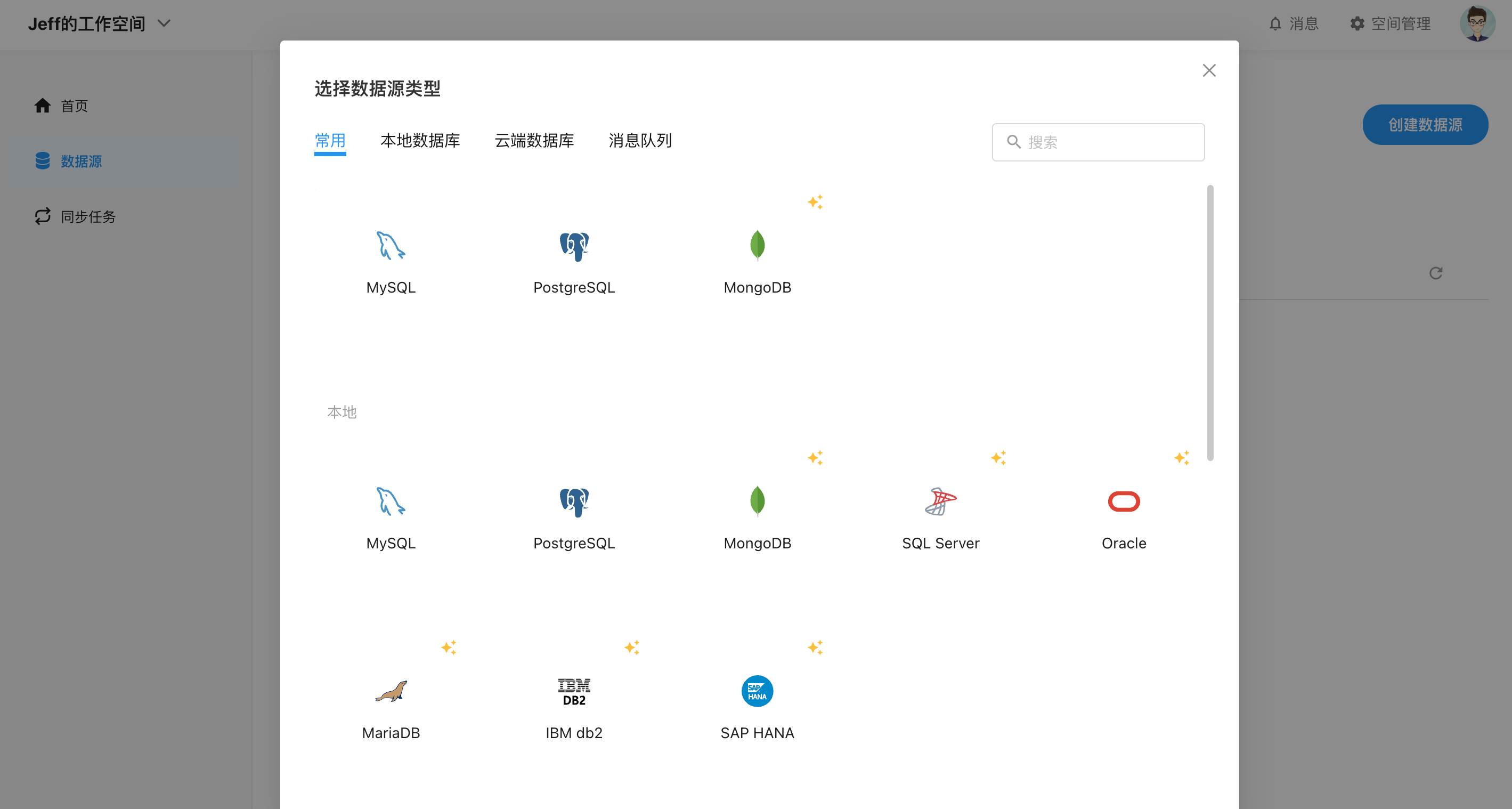 数据源模块用于管理平台连接的所有外部数据源,包括数据库、消息队列和目的地(写入端)。在创建同步任务之前,必须先在此处配置好数据源信息。