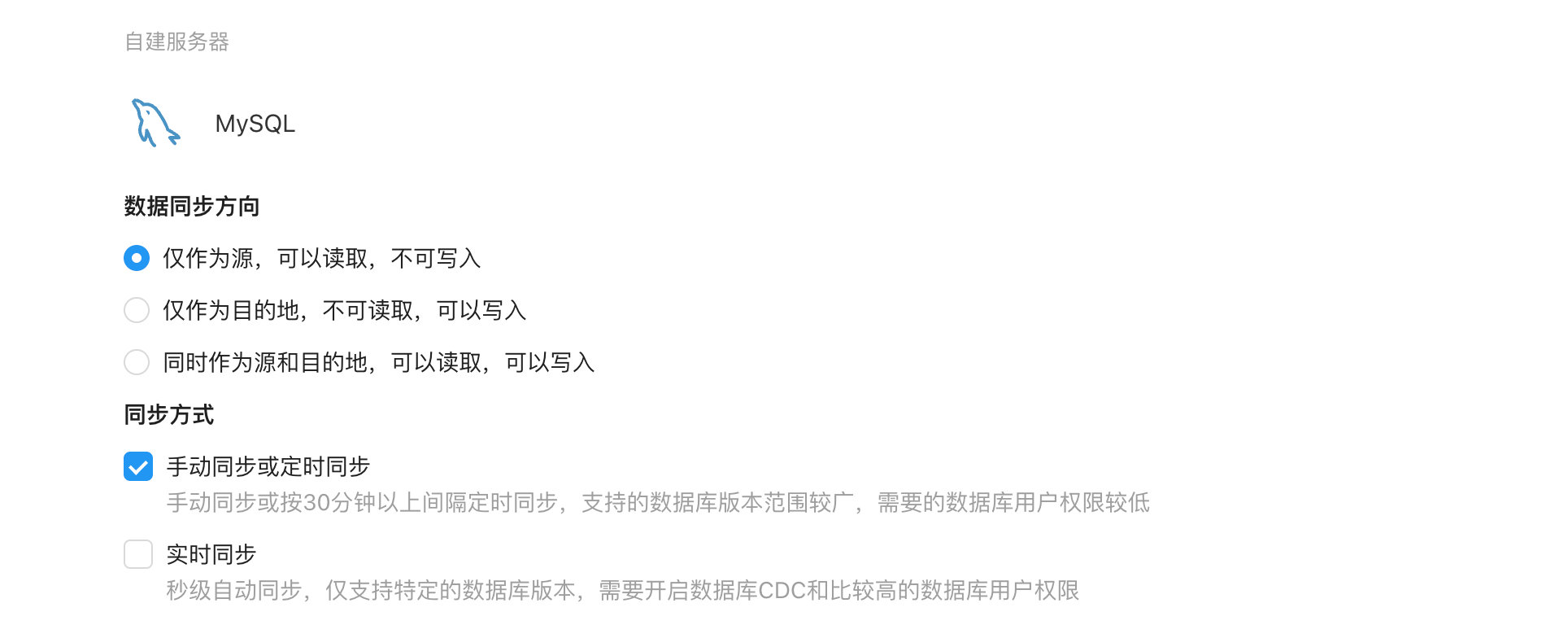 | 作为 | 显示该数据源是作为「源」还是「目的地」或两者兼有 |