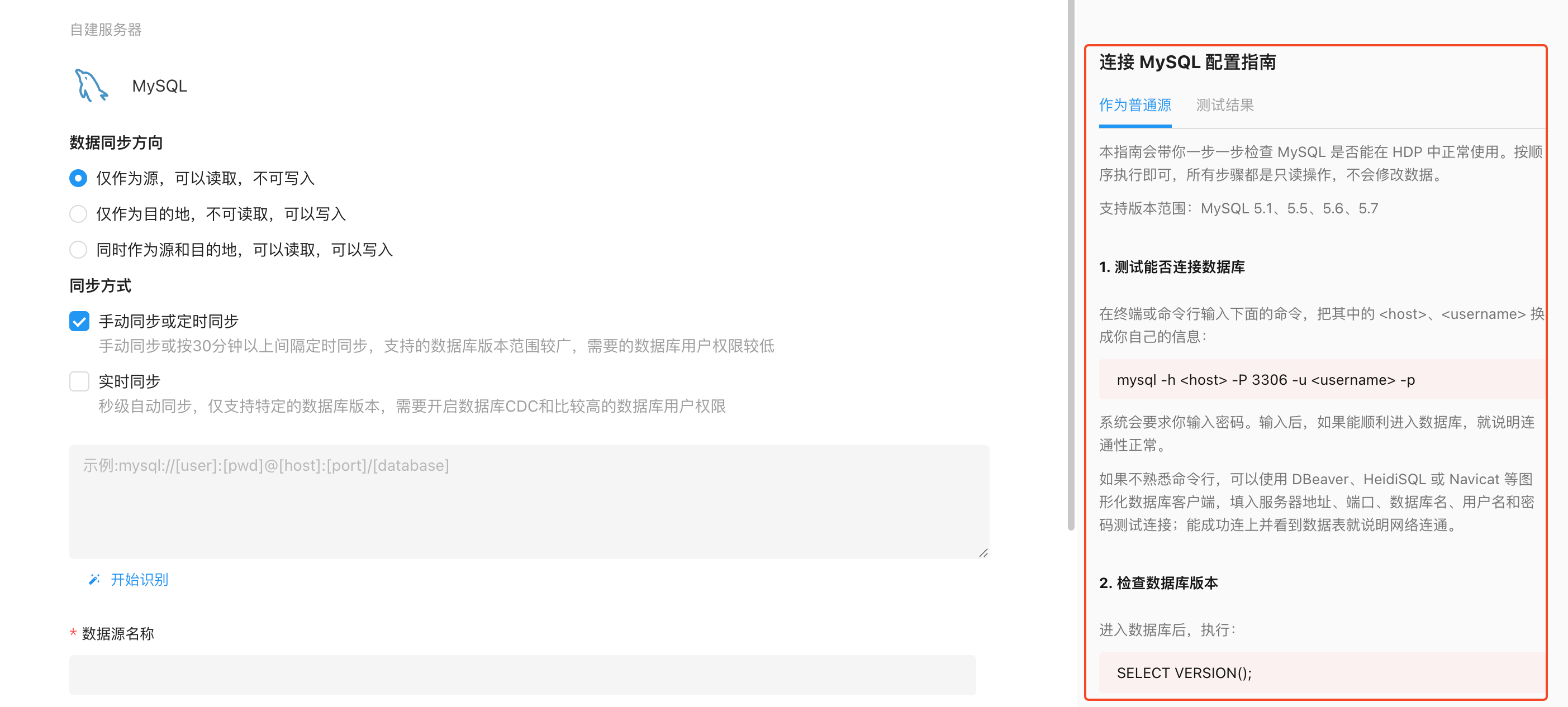 | 数据源名称 | 用户自定义的可读名称,便于识别 |