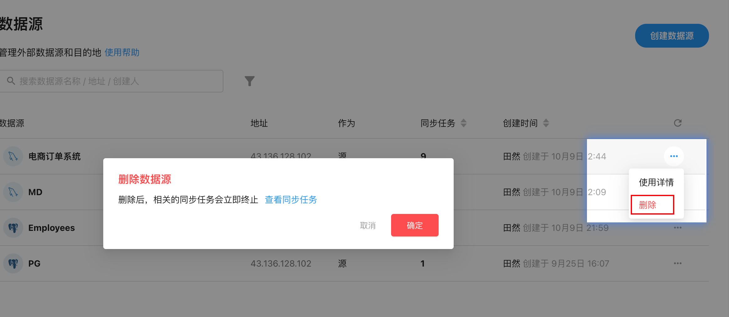 | 同步任务 | 当前数据源正在被多少个同步任务使用 |