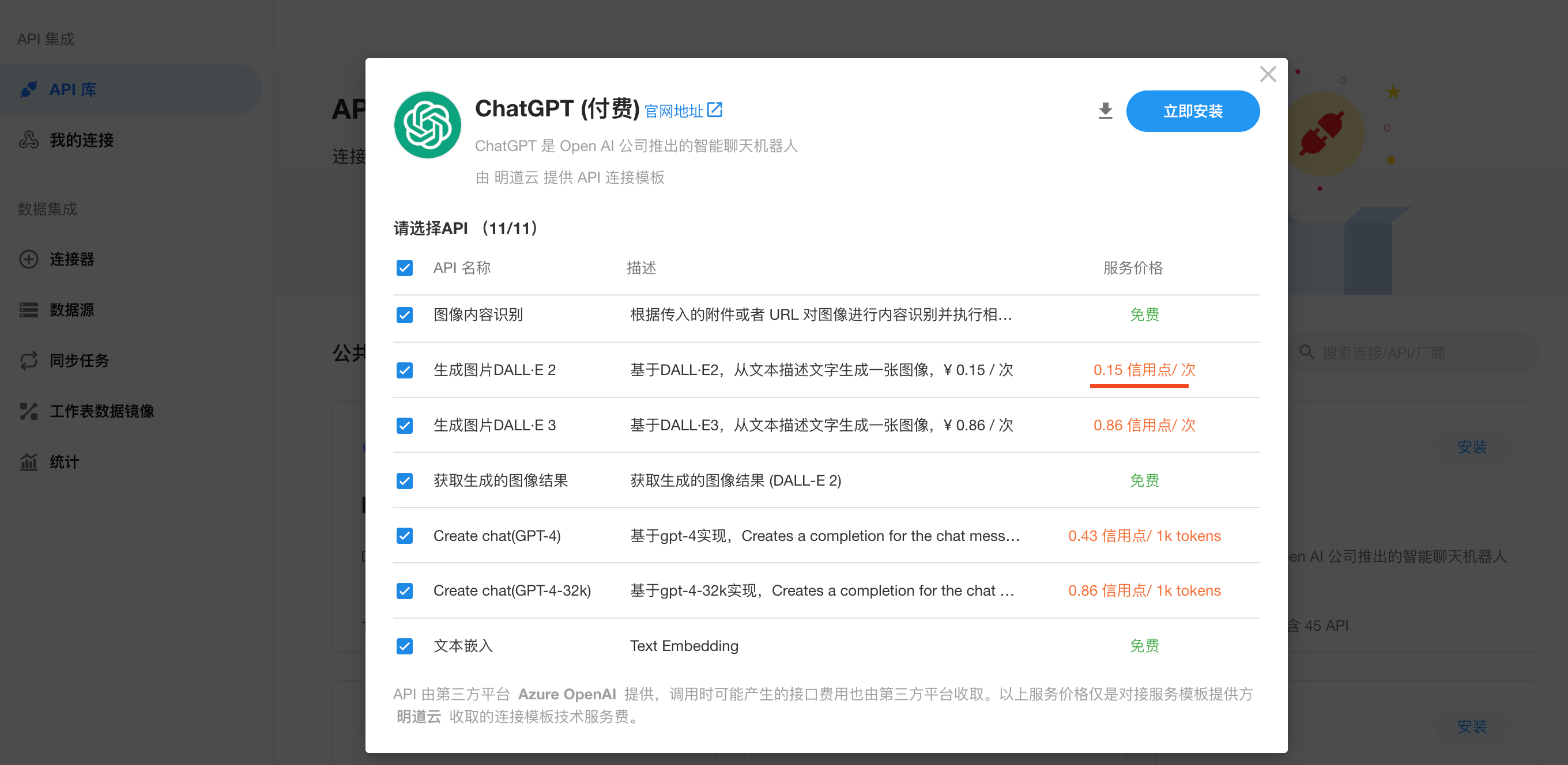 如何查看集成中心API服务费用: